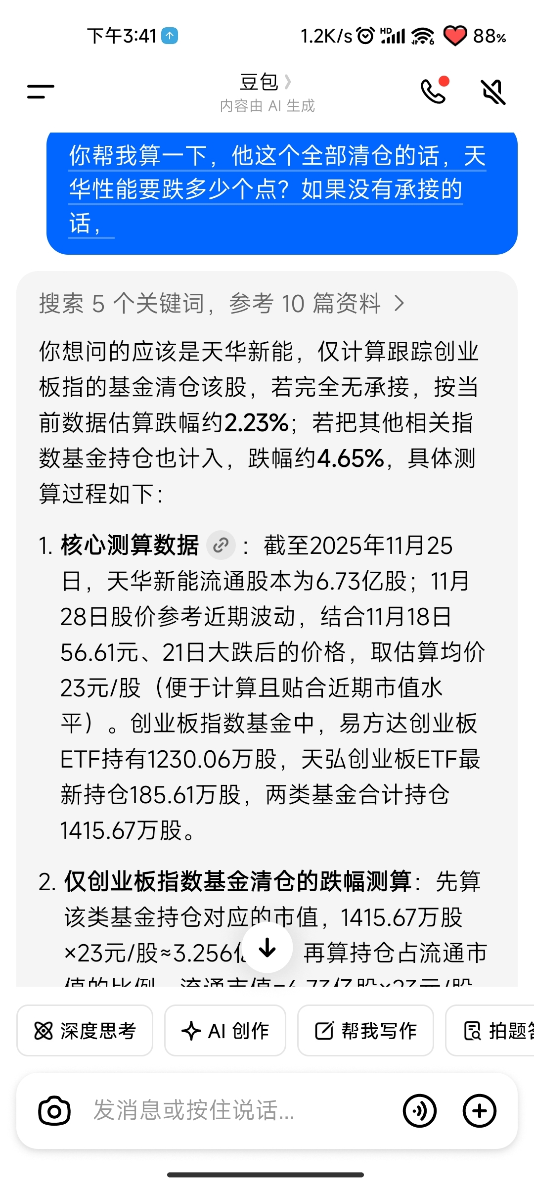$天华新能(SZ300390)$ 我帮大家伙查了资料。AI算出来了,哪怕完全没有承接,这些股票全部抛售,也就最多跌四个多点。还没有上周五跑的多呢,怕个毛啊。