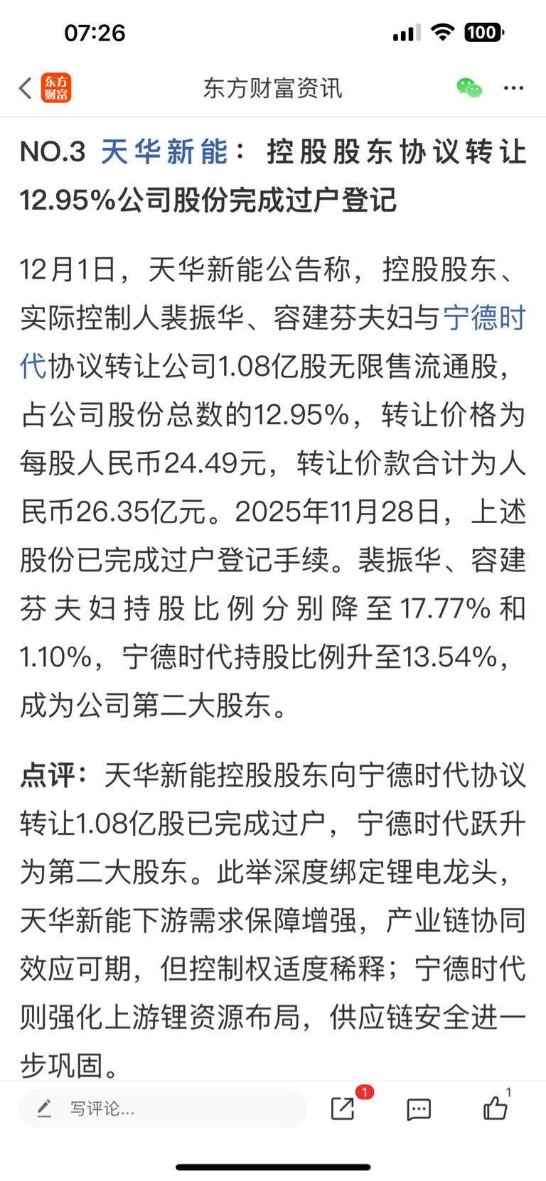 $天华新能(SZ300390)$ 宁德时代一哥要当天华新能的新老板,天华一飞冲天