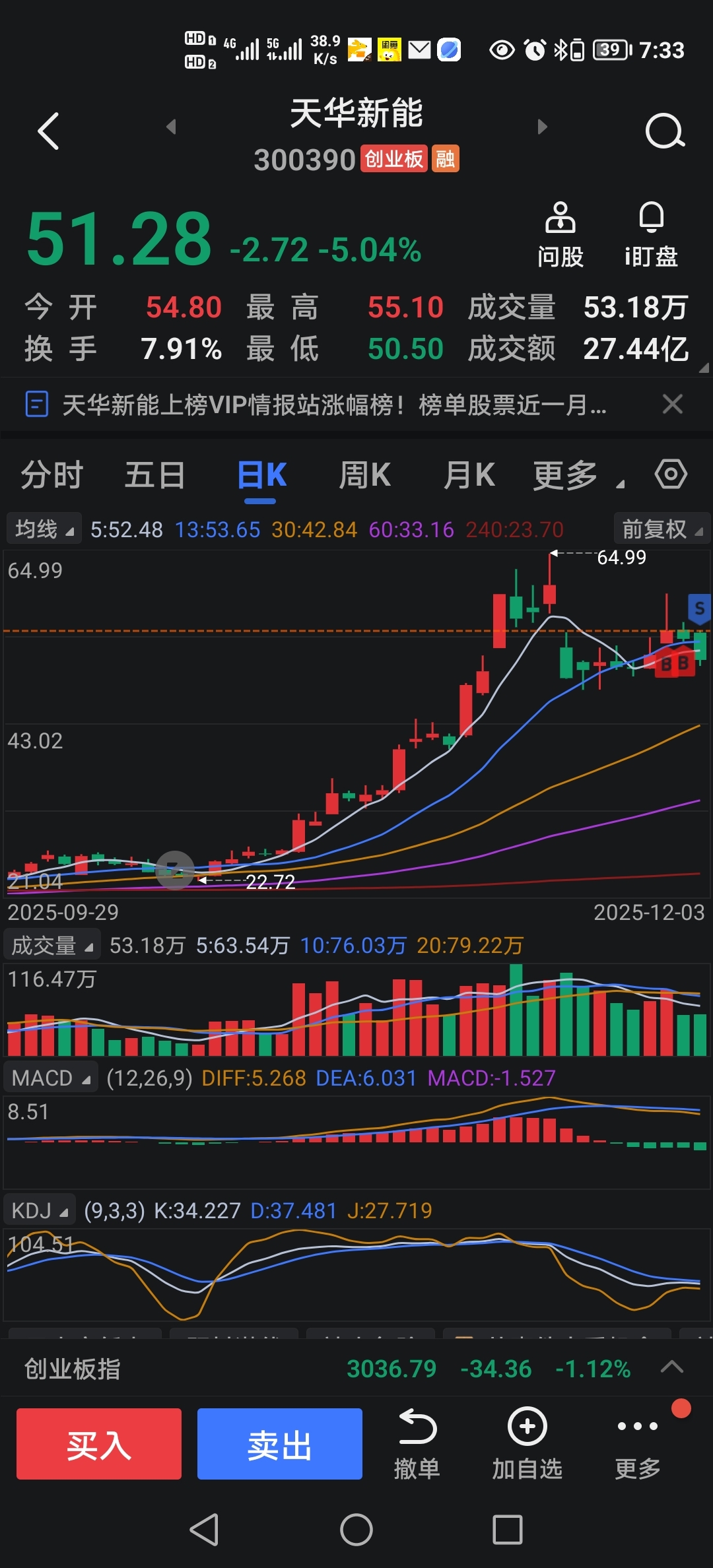 $天华新能(SZ300390)$ 我看双偷结构,不知道是不是误判了,自己看不懂就是止损了,也许又卖再了最低点,唉散户就是这样,喜欢追又喜欢割。本金慢慢的变没有了,毛病改不了,这是归宿。玩彻底离开吗?年前好多票都是翻几倍的,就最近一个招标股份全仓每拿住赚了一点就跑3天走出50%涨幅。