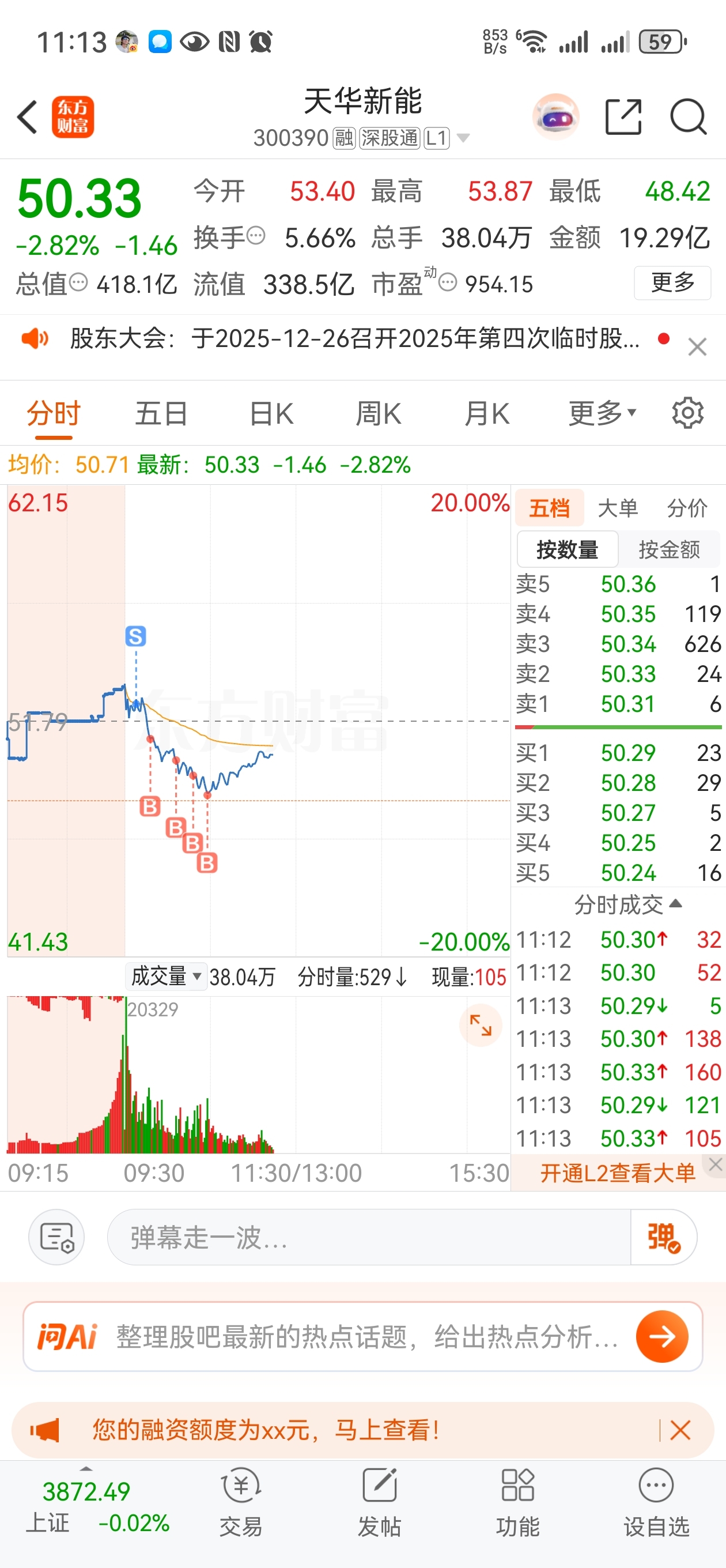 $天华新能(SZ300390)$ 早上全出了,最后一笔直接把仓位加完了,剩下的只能听天由命了