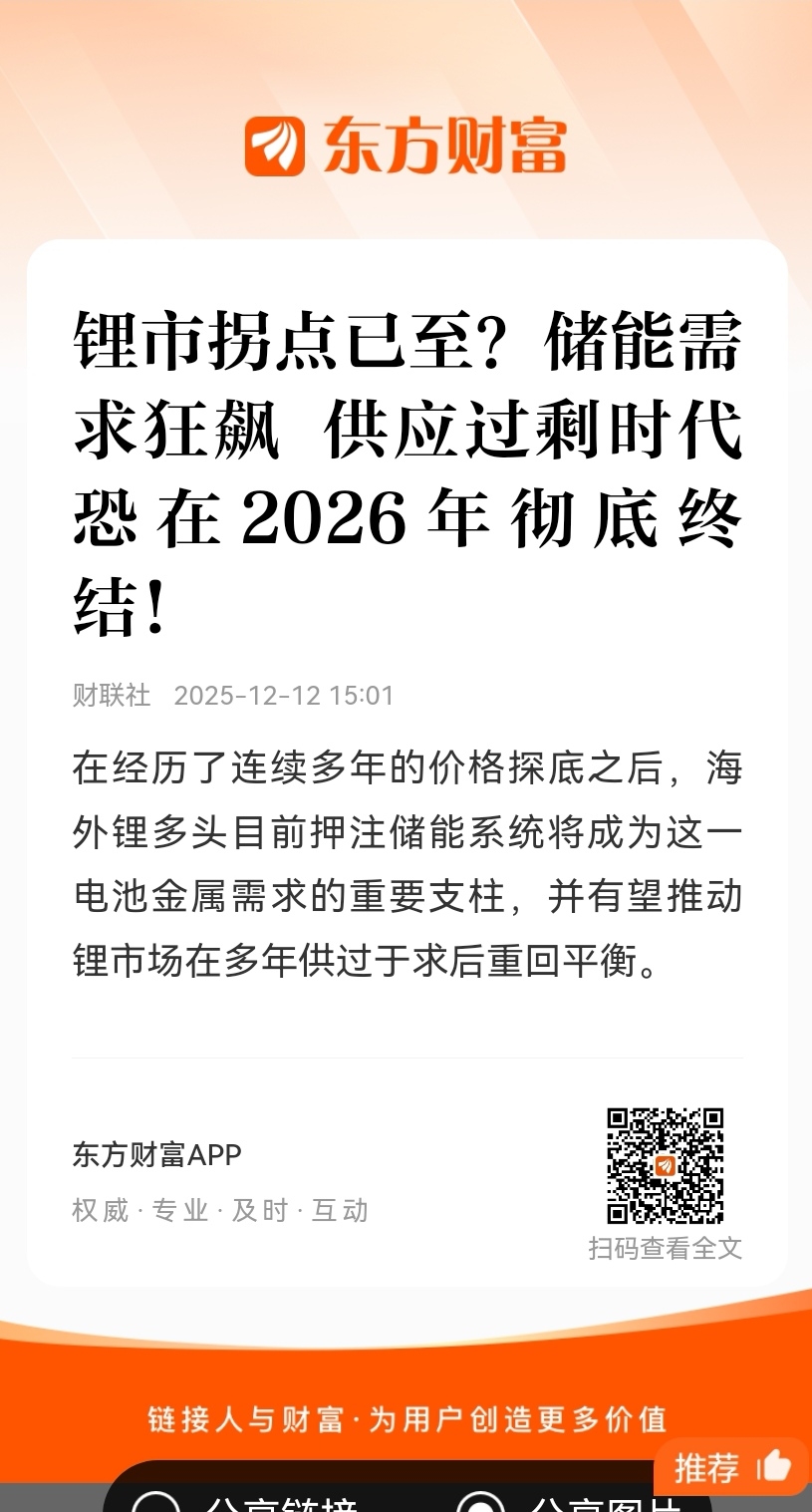 $天华新能(SZ300390)$ $赣锋锂业(SZ002460)$ $宁德时代(SZ300750)$ 观察:广期货规则修改,不会影响明年储能市场的强劲需求,不会改变碳酸锂市场的供求关系。其放宽标准和条件,是扩大可以参与期货交易的对象,短暂影响期货市场价格而已,对投资者更多是心理和情绪影响。一旦心态平静后,正确解读规则修改,市场会强劲修复!