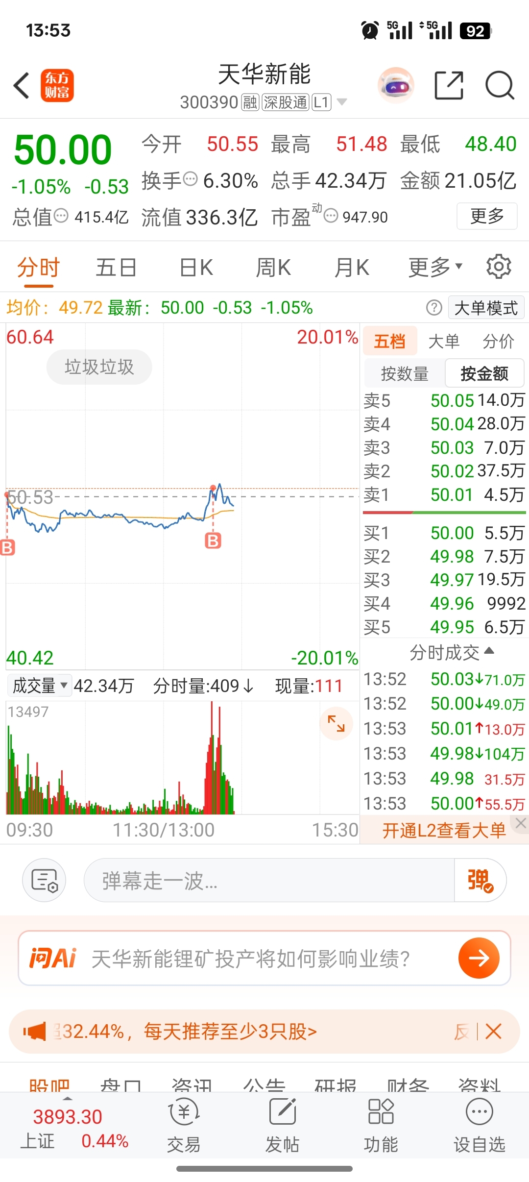 $天华新能(SZ300390)$ 不好意思,我吧这个股买蹦了