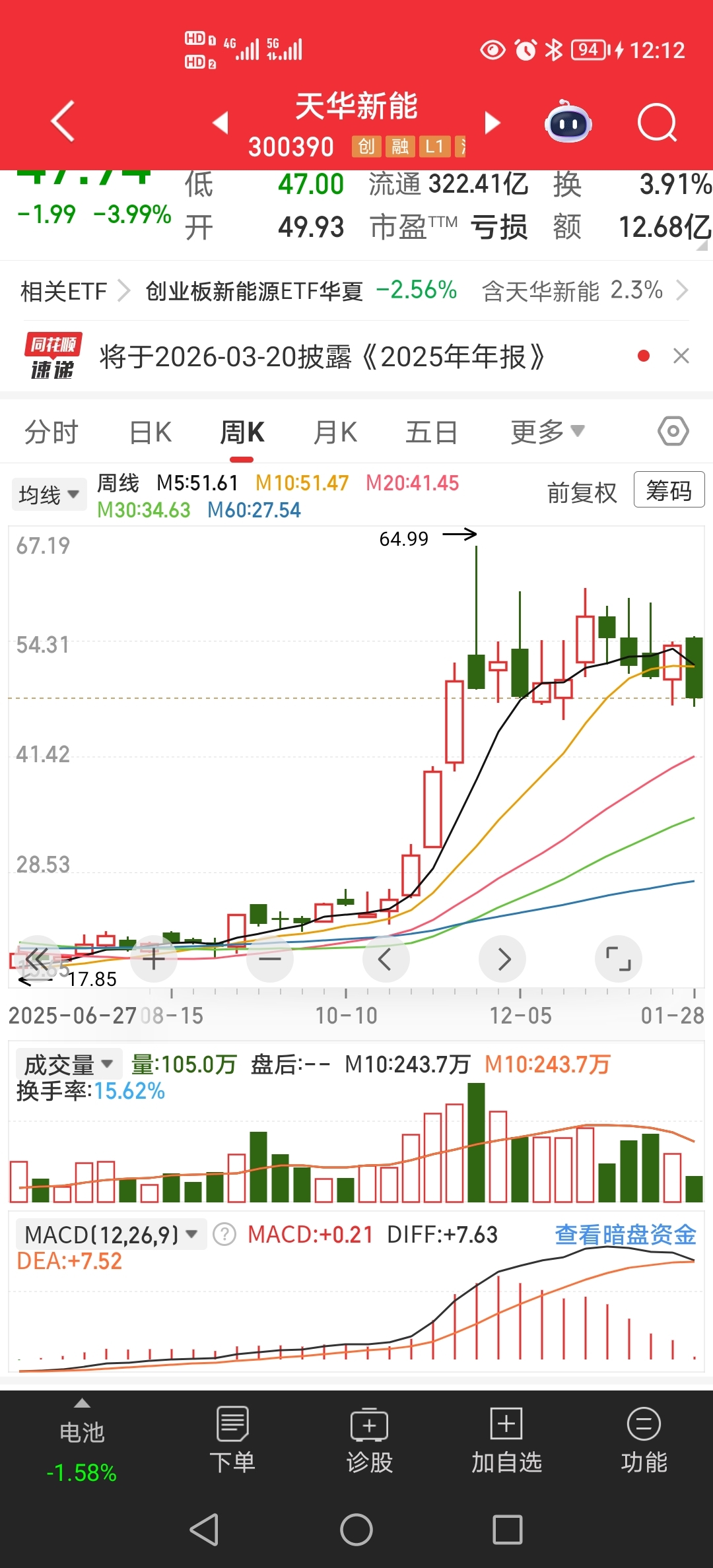 $天华新能(SZ300390)$ 这个股票周线走弱了