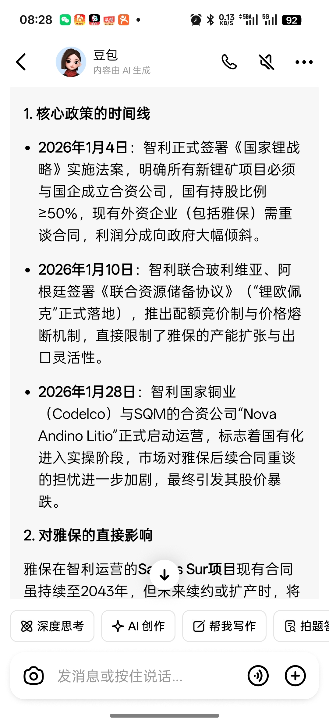 $天华新能(SZ300390)$ 雅保受智利锂政策影响,利好国内锂企