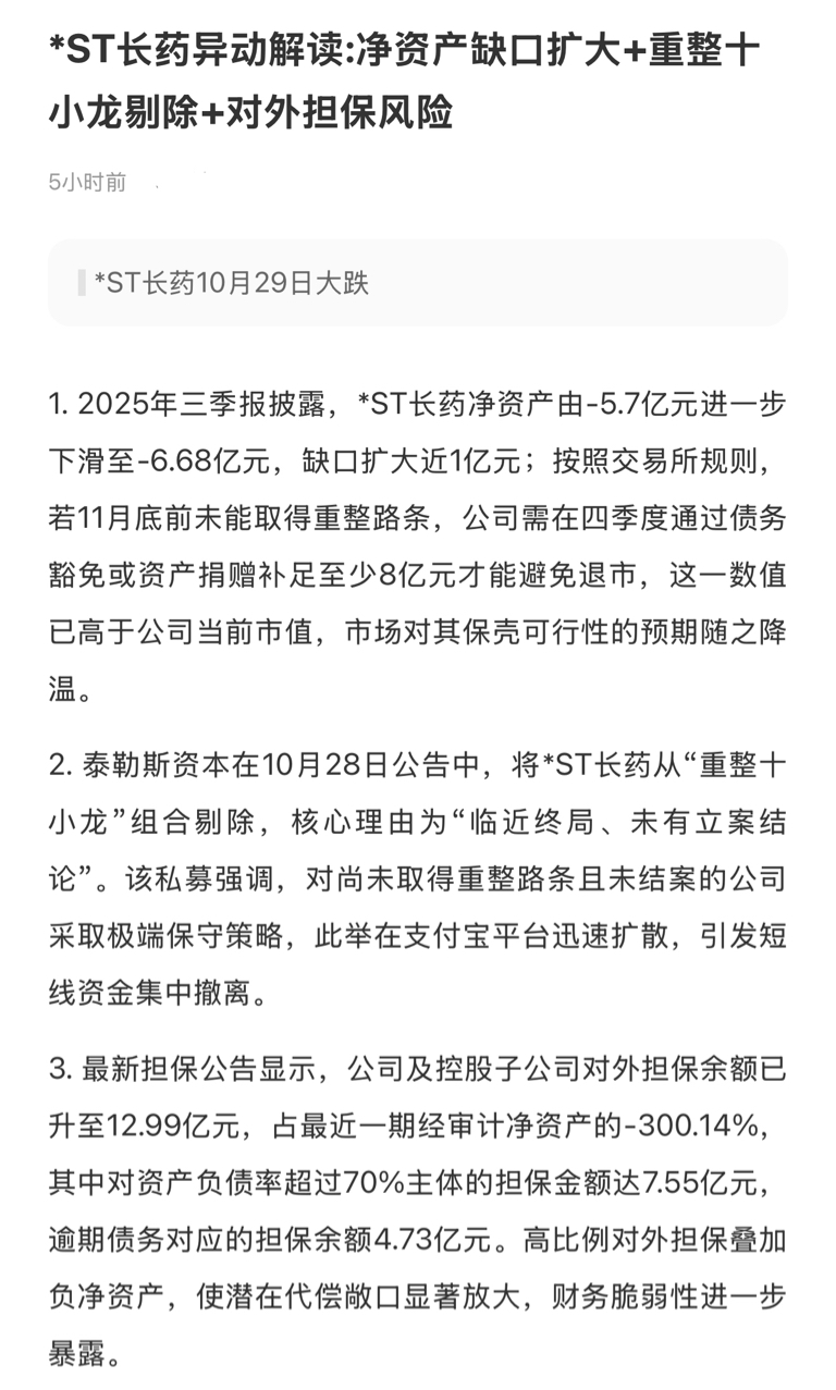 $*ST长药(SZ300391)$ 提前锁定退市.11月底前补不齐钱 直接退市