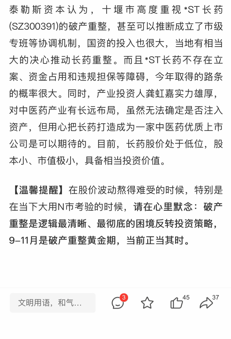 $*ST长药(SZ300391)$ 兄弟们,这两天大跌的原因找到了,这个泰勒斯资本27号盘后发的文章,28,29号连续两天资金出逃,估计是跟着这个泰勒斯一起买的人清仓跑路了。