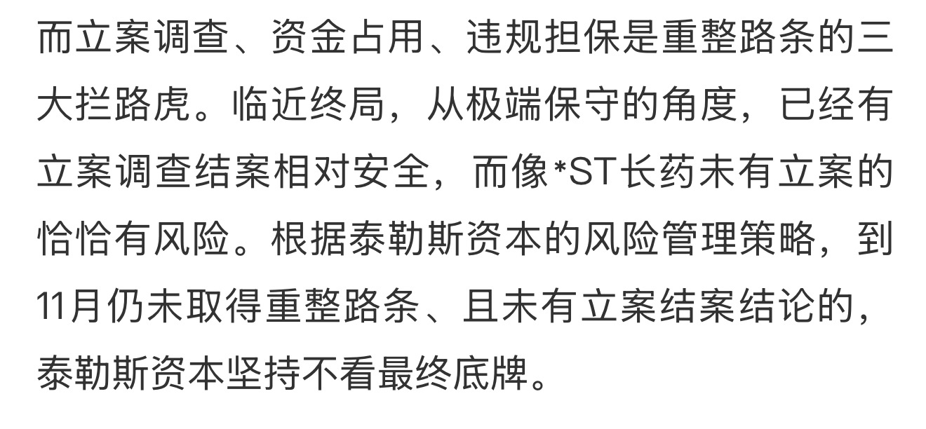 9月28推长药的时候,说没有立案,资金占用,违规担保,是好事。拿到路条概率很大。
