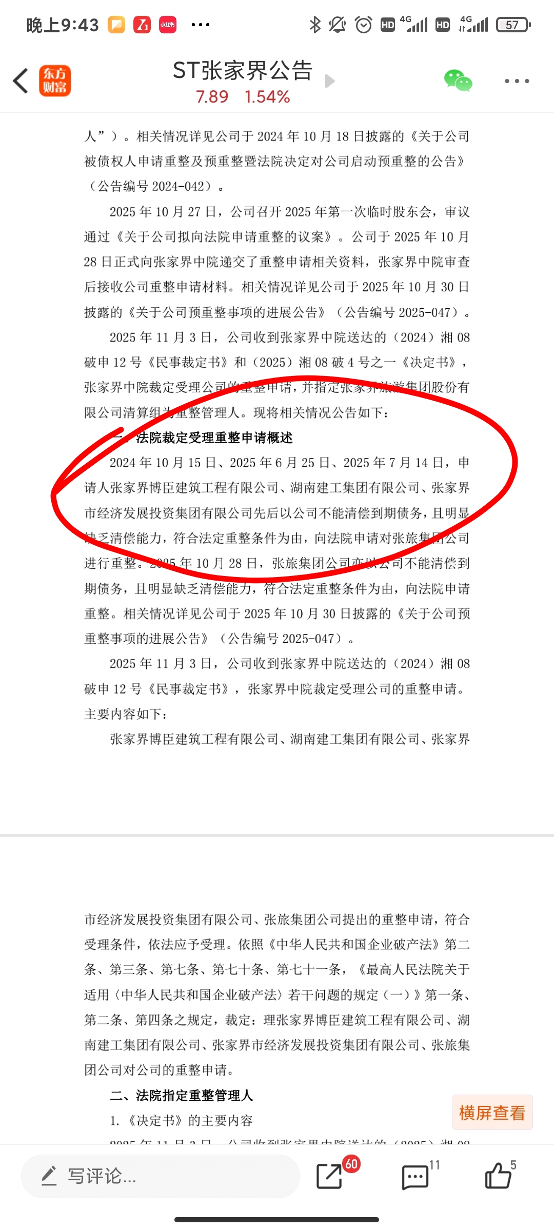 ST张家界已经裁定重整了也是预重整延期到了26年1月。多个债权人多次申请重整,终
