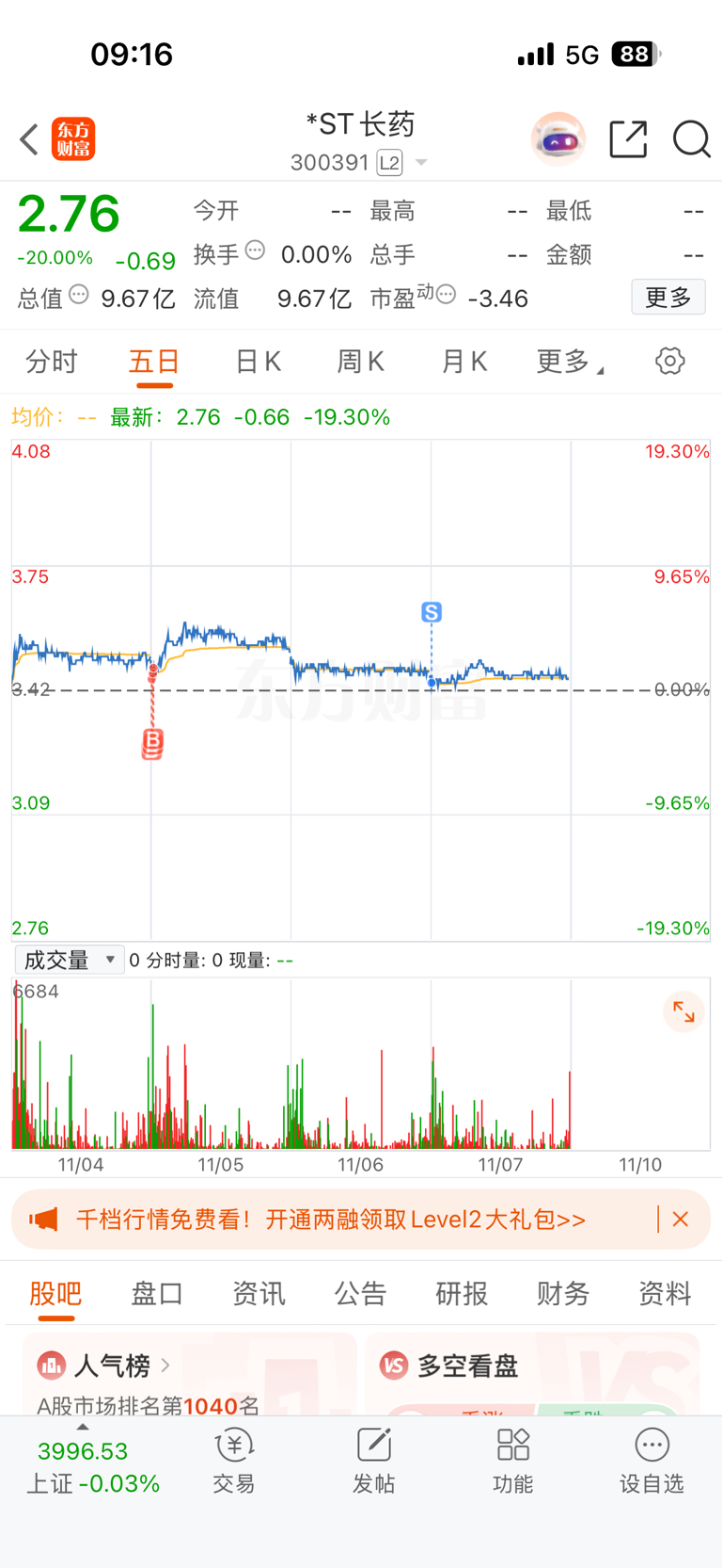 $*ST长药(SZ300391)$ 感谢不杀之恩