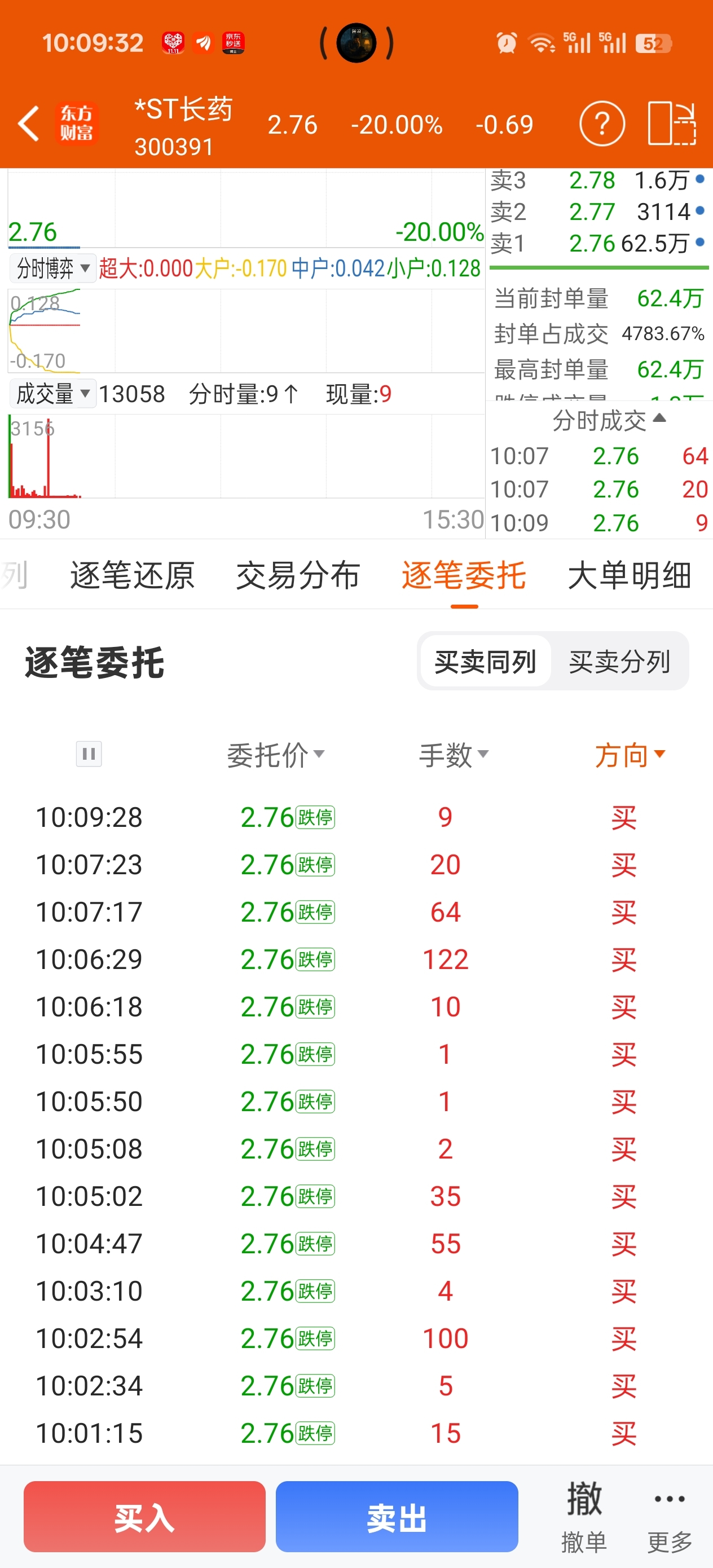 $*ST长药(SZ300391)$ 挂买单今天就是大哥,你要是不服,你也来买
