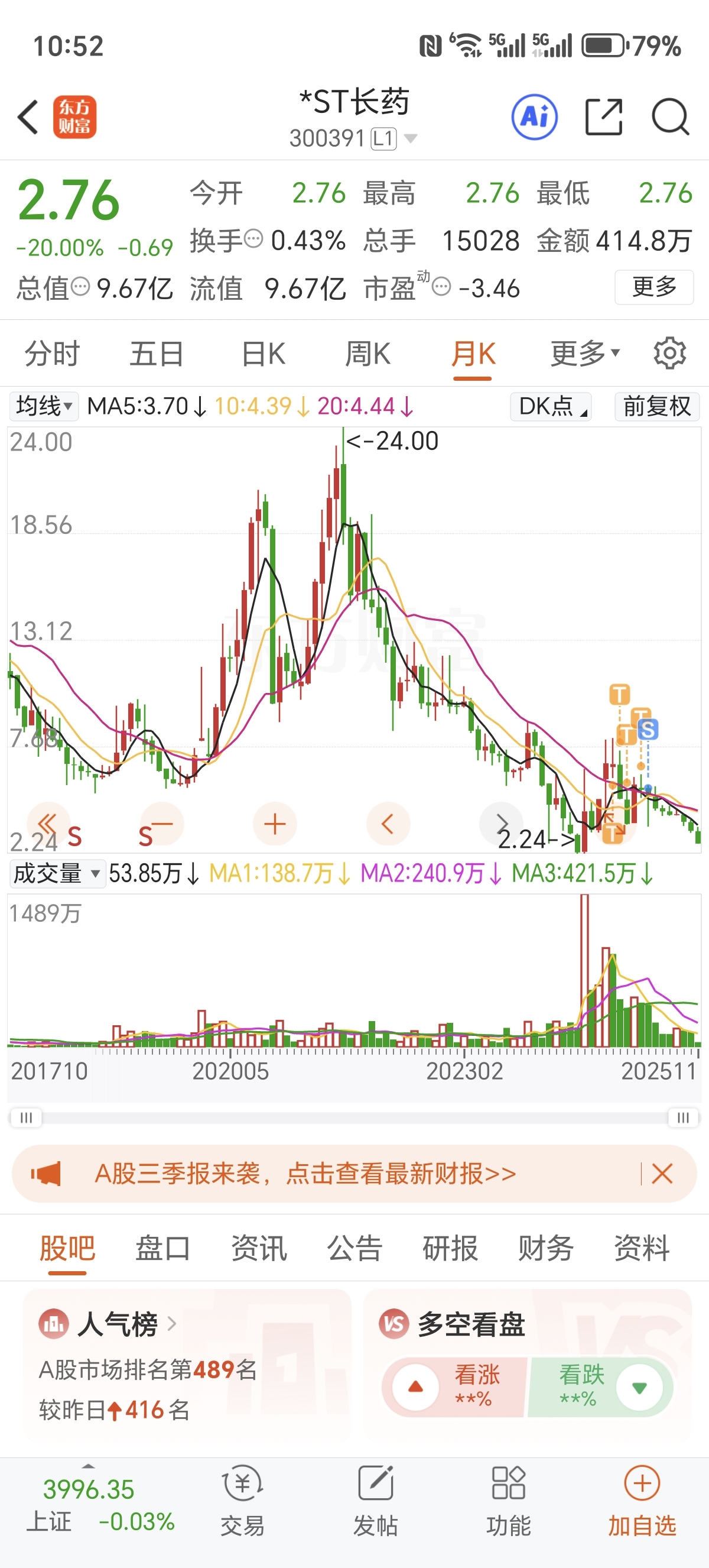 $*ST长药(SZ300391)$ 喜新厌旧让我逃过一劫