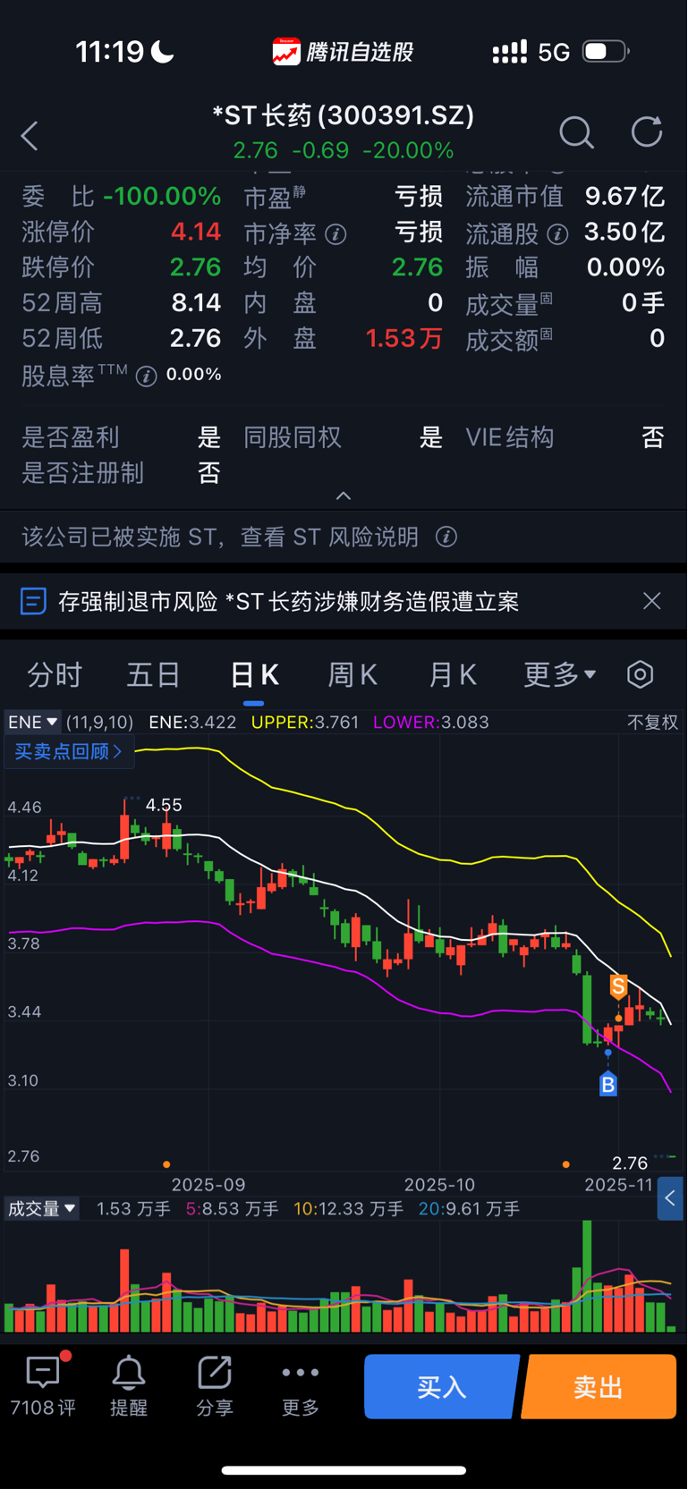 $*ST长药(SZ300391)$ 周五一定不要买问题股,因为这些公告都是周五才发出来的,我好险啊,周一卖了
