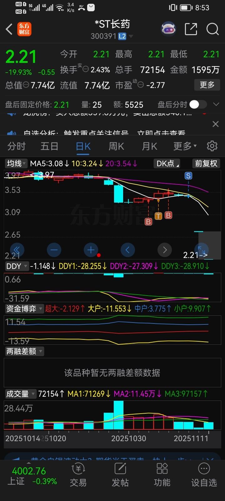 $*ST长药(SZ300391)$ 最差的sT股,满仓不反弹卖了。惊出一身冷汗