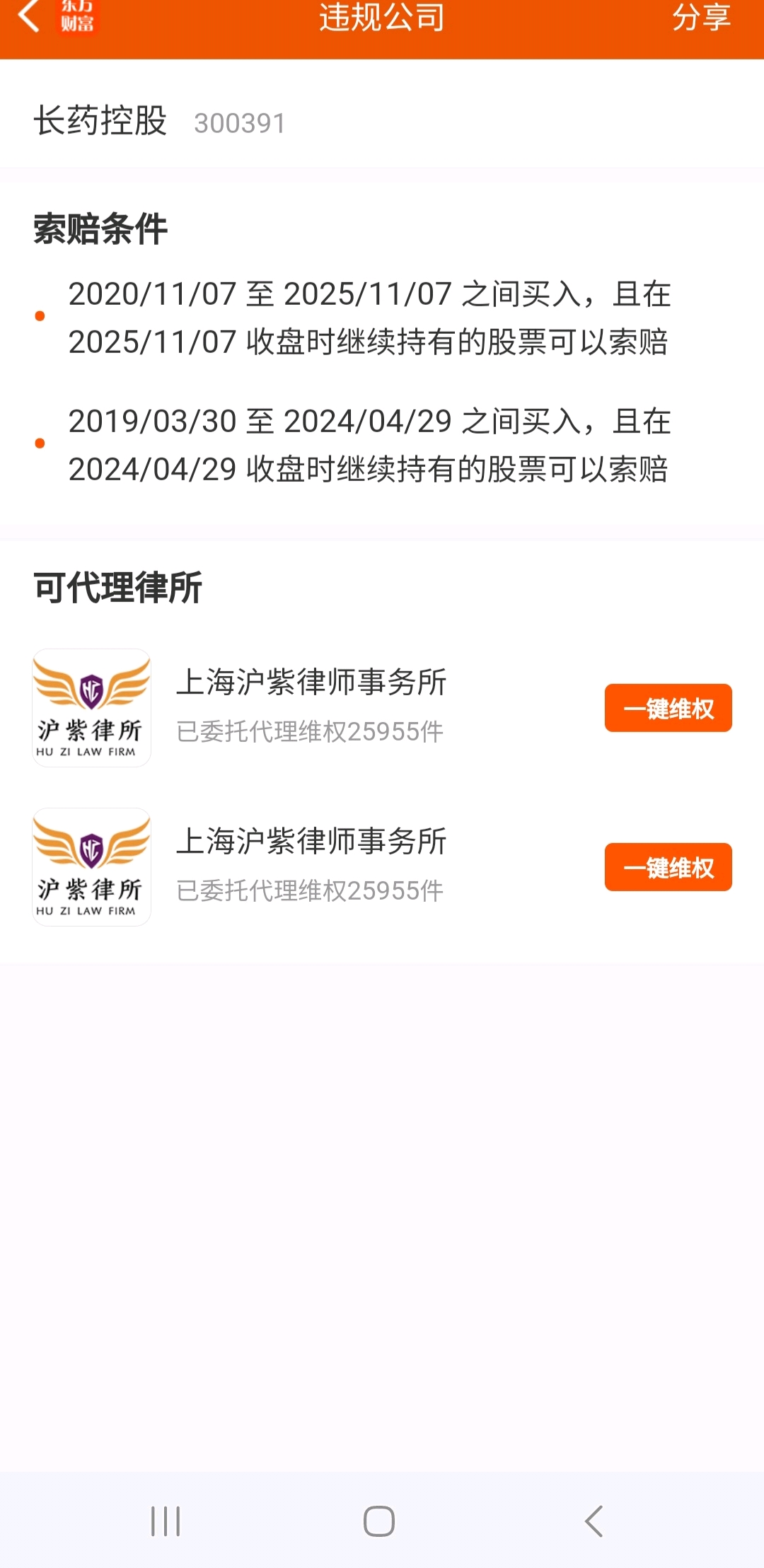 $*ST长药(SZ300391)$ 大家赶紧填维权,最好重整成功,大家都会得到赔付,如果重整不成功公司就没有钱赔大家了,大家索赔没有任何费用,所以大家都填集体索赔,填的越多越好,在11.7号前包括当日买进的都可以索赔,