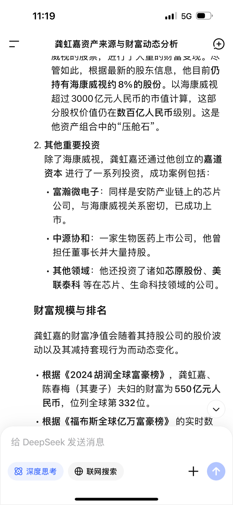 当地国资给长药投了5个多亿,身价500亿龚总投了5个多亿!龚总是海康卫视第二大股