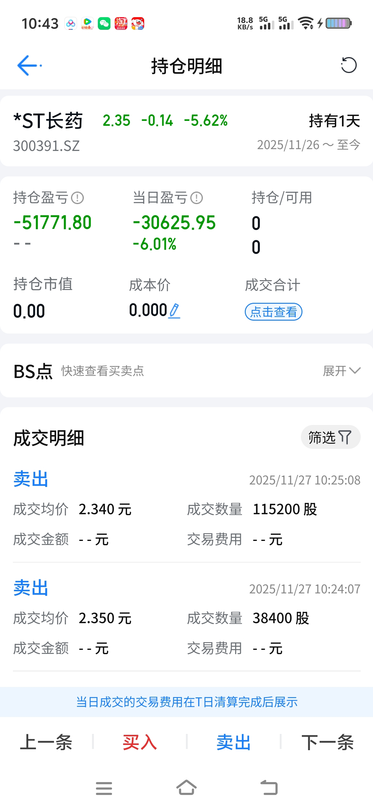 $*ST长药(SZ300391)$ 两天亏五万多。真够垃圾的。