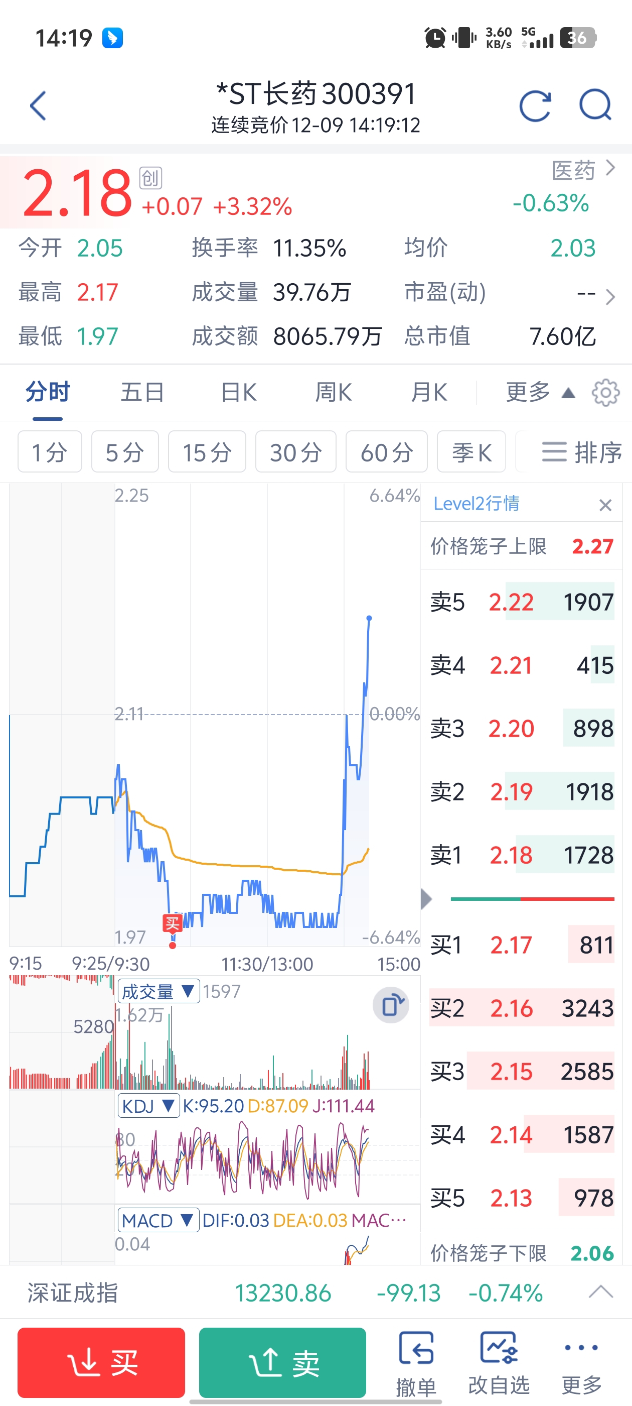 $*ST长药(SZ300391)$ 能不能吃个肉