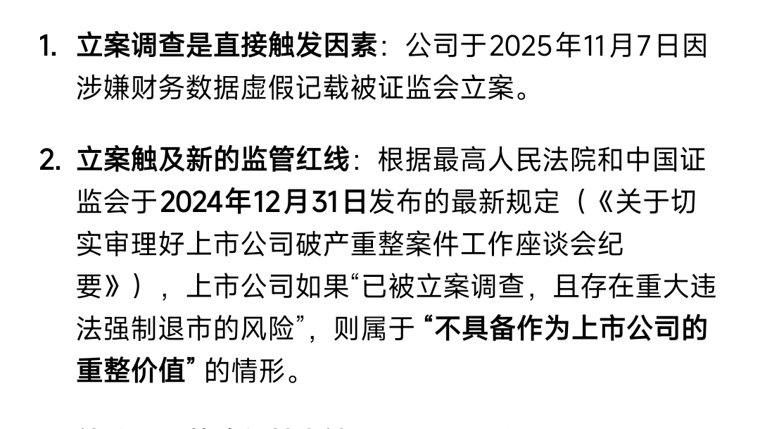 24年新规,重整不用看了。只要收到立案调查肯定影响重整,不用拿几年前的来说。
