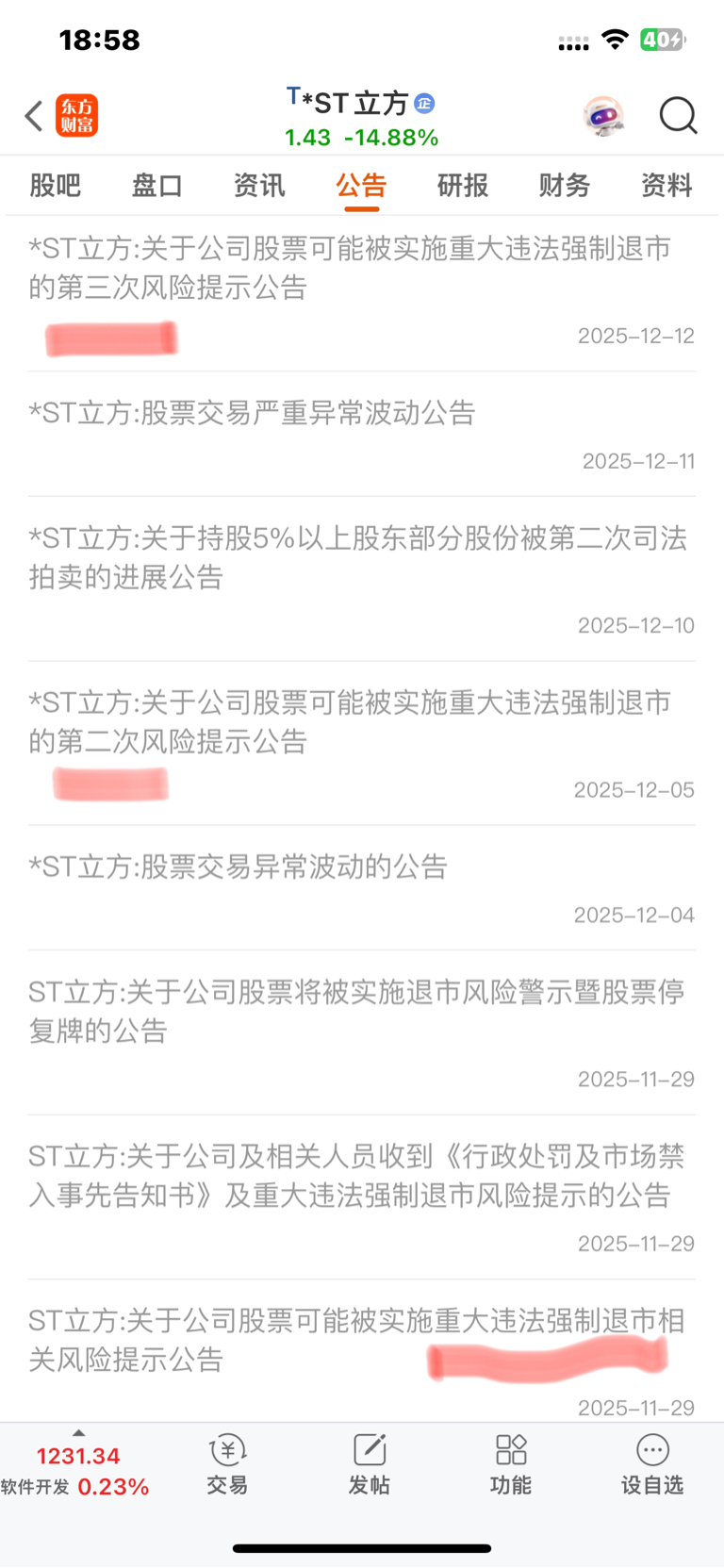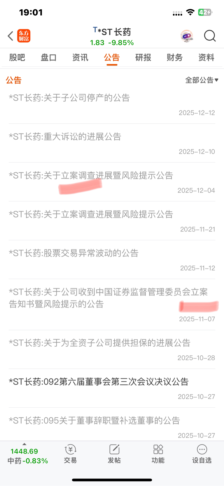 立方每周提示一次“退市风险”长药每月提示一次“立案进展”性质截然不同。