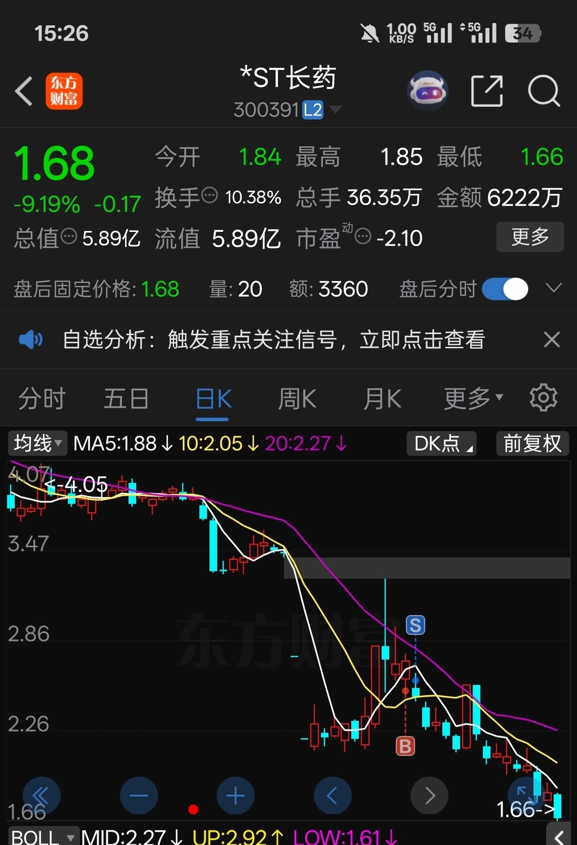 $*ST长药(SZ300391)$ 上个月25号水下买的,26号跑了,跌这么惨啊