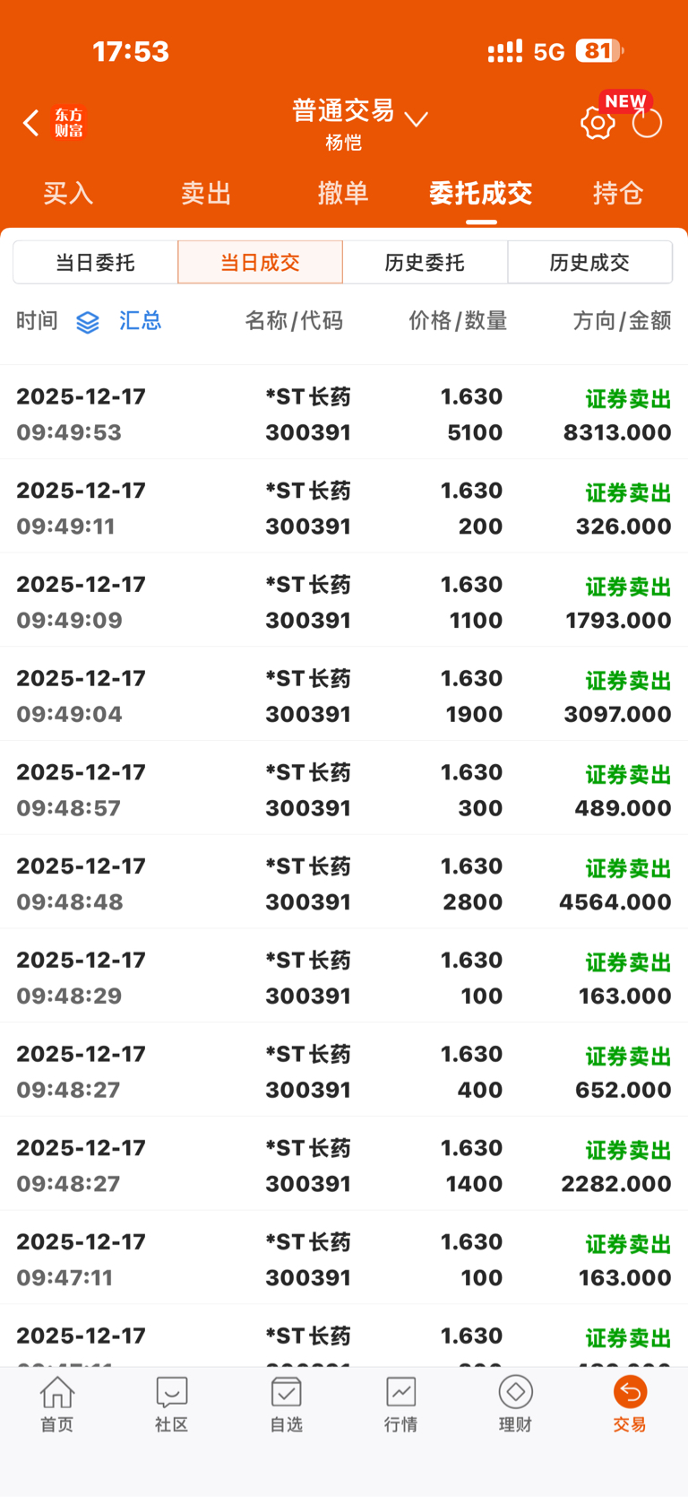 $*ST长药(SZ300391)$ 今日长药1.63全部清仓、1.24买入了st立方