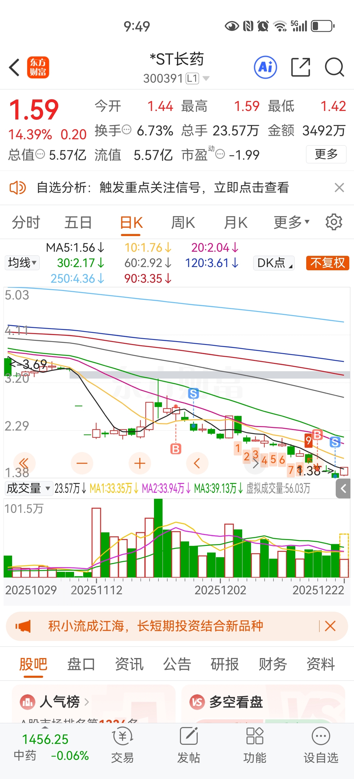 $*ST长药(SZ300391)$ 一路买一路割,一路亏,卖完就涨,吐了