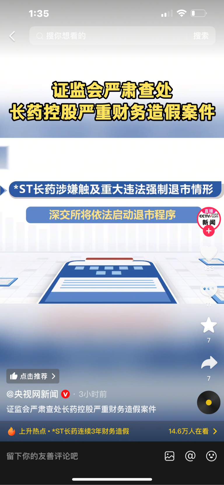 $*ST长药(SZ300391)$ 央视都说了启动退市程序.够权威不.闷杀了