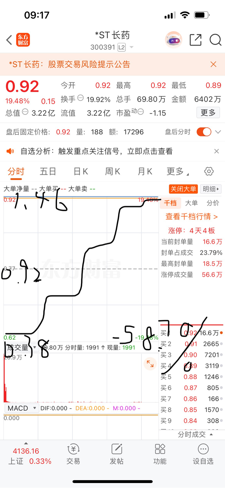 $*ST长药(SZ300391)$ 昨晚梦到复盘的走势