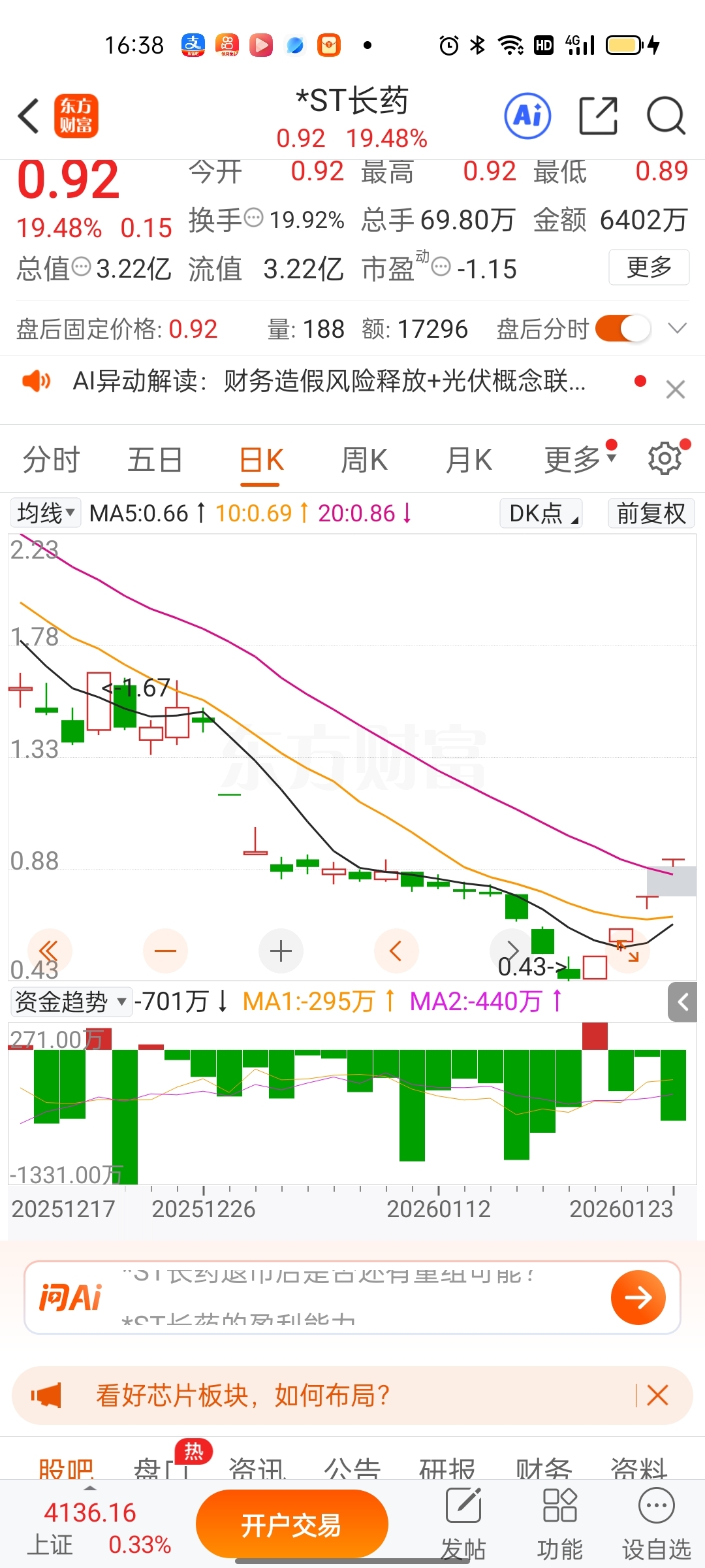 $*ST长药(SZ300391)$ 长药诱多出货差不多了,该甩卖了