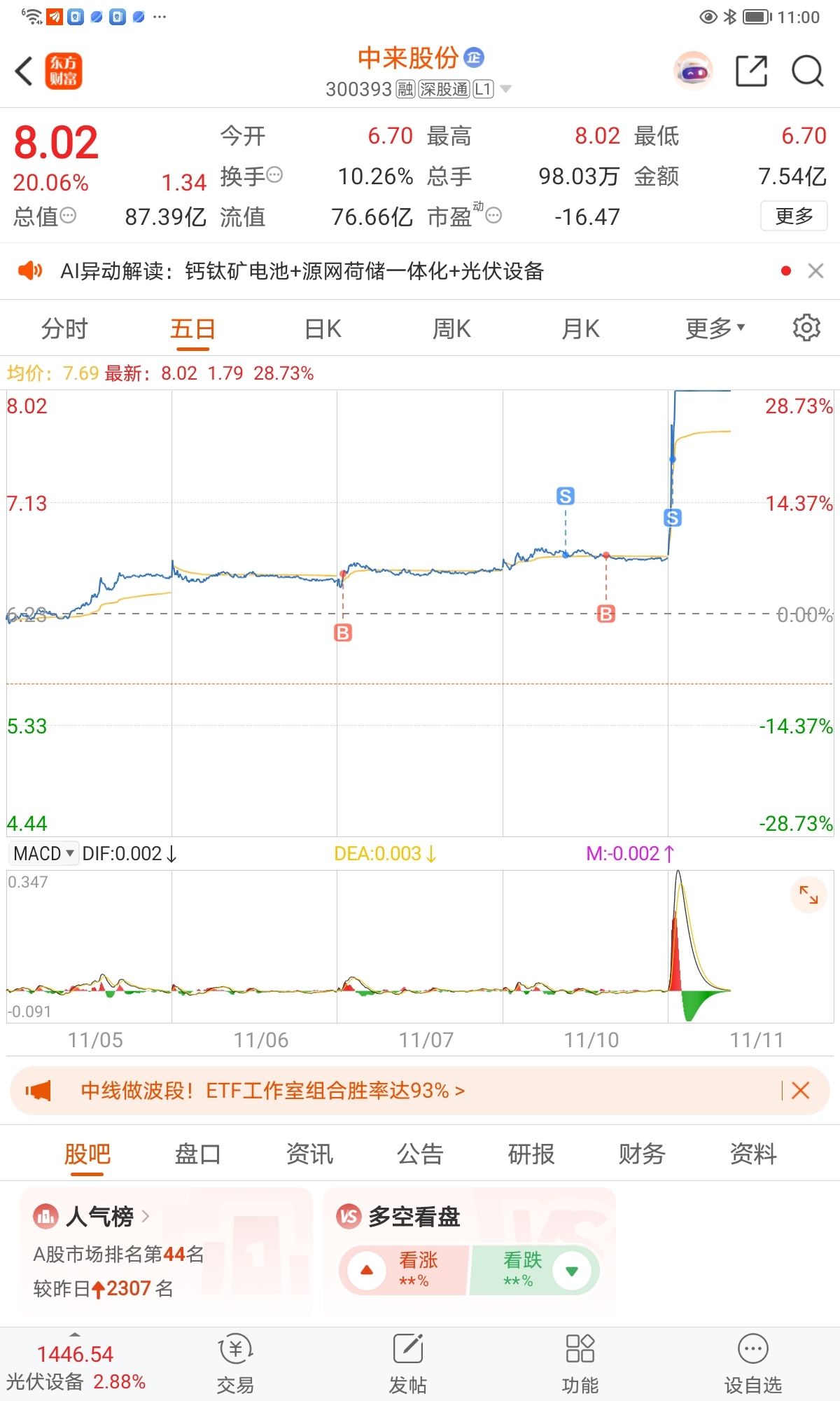 $中来股份(SZ300393)$ T惯了手,还好留下半仓,本来满仓进城的