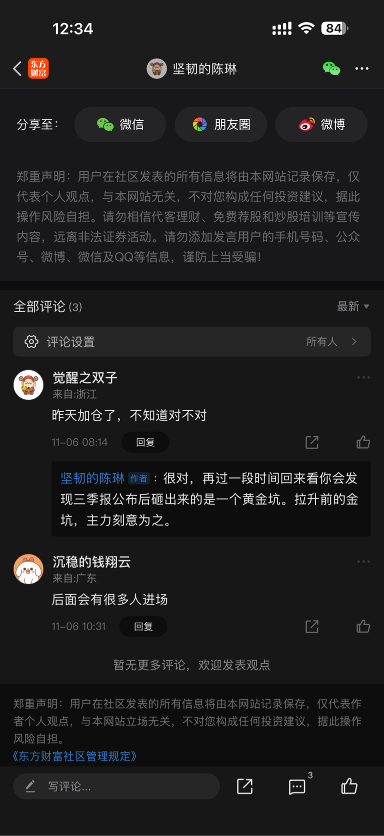 温馨提示: 1.根据《证券法》规定,禁止编造、传播虚假信息或者误导性信息,扰乱证券市场;2.用户在本社区发表的所有资料、言论等仅代表个人观点,与本网站立场无关,不对您构成任何投资建议。用户应基于自己的独立判断,自行决定证券投资并承担相应风险。《东方财富社区管理规定》