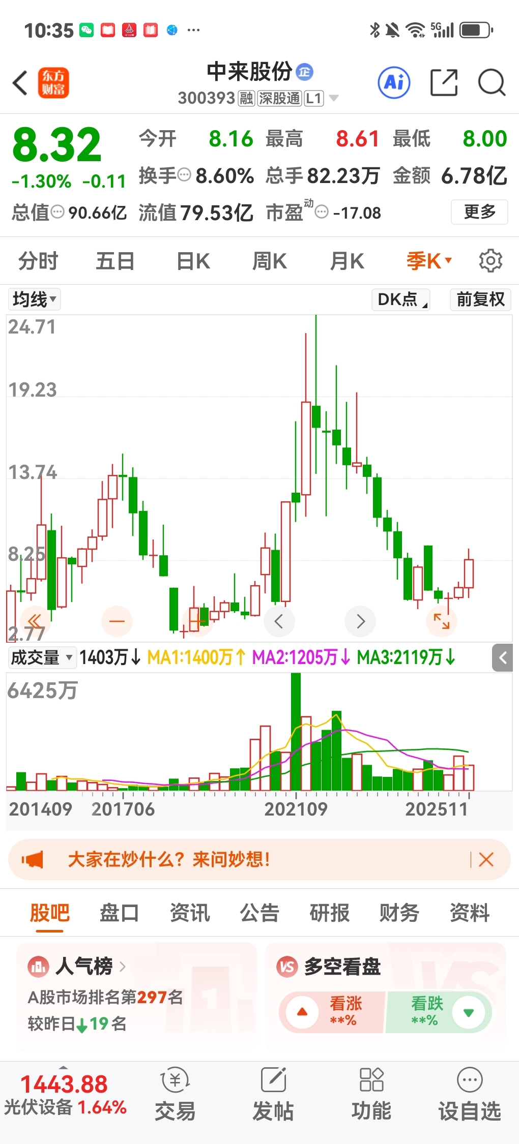 $中来股份(SZ300393)$ 这个位置起码长线不会有风险