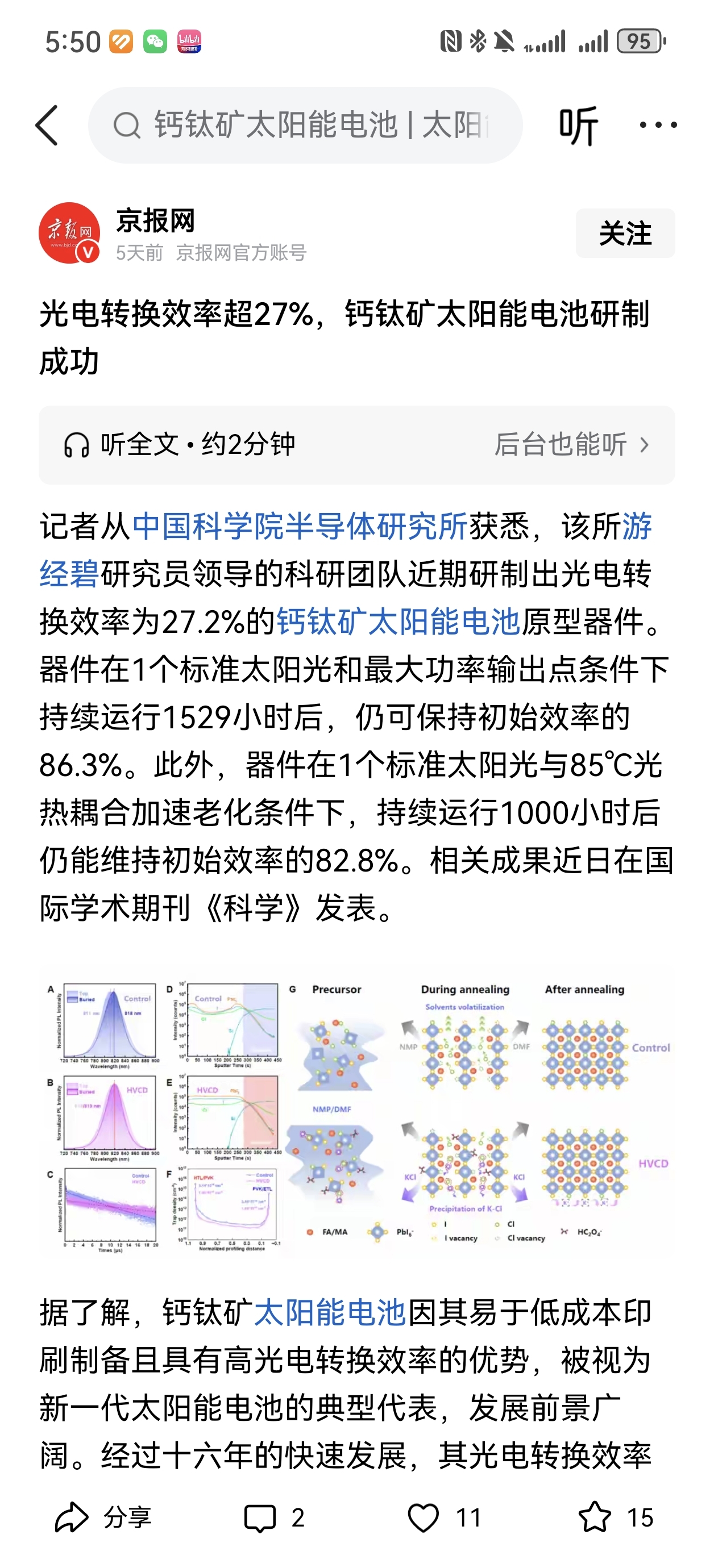 中科院,光电转换效率超27%,钙钛矿太阳能电池研制成功 看资金认不认了