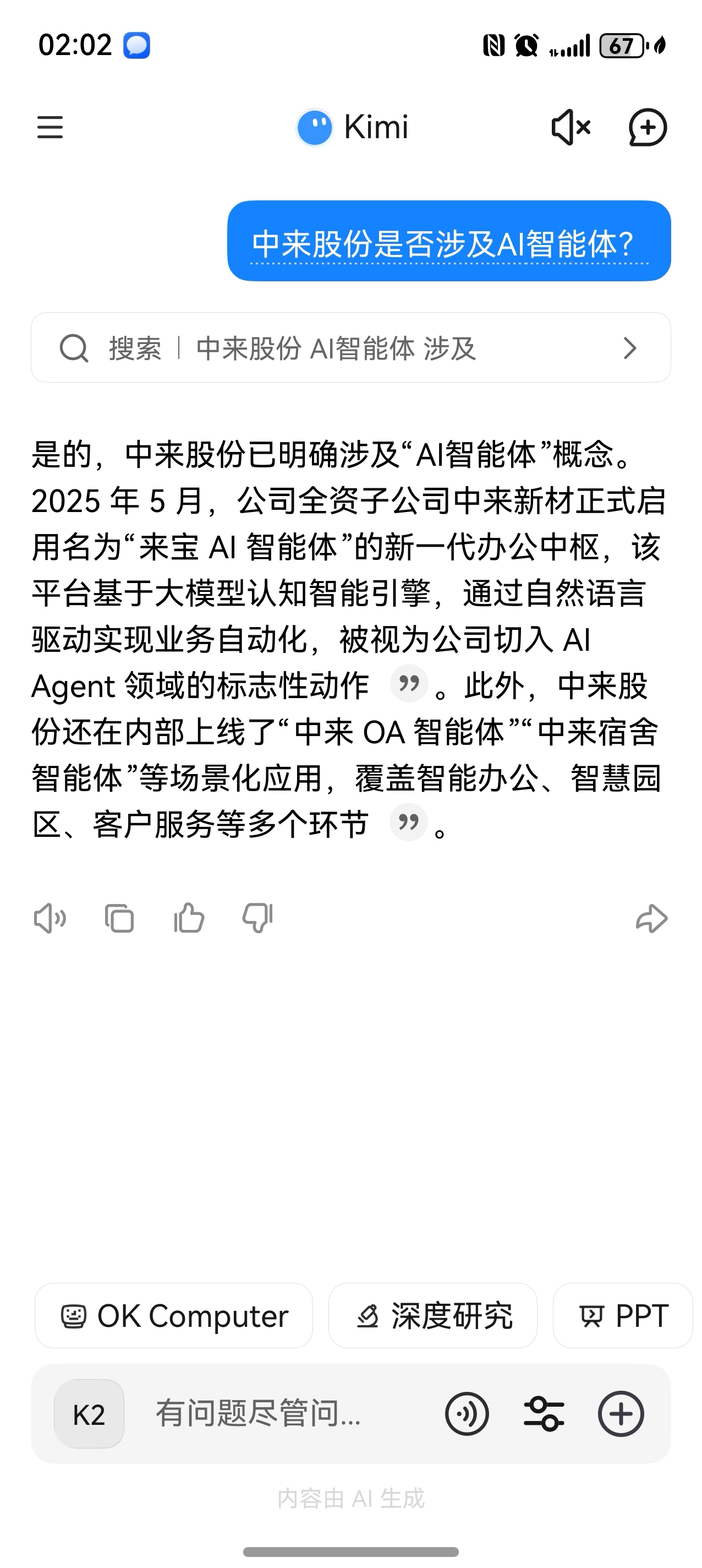 $中来股份(SZ300393)$ 居然是AI智能体!有意思!