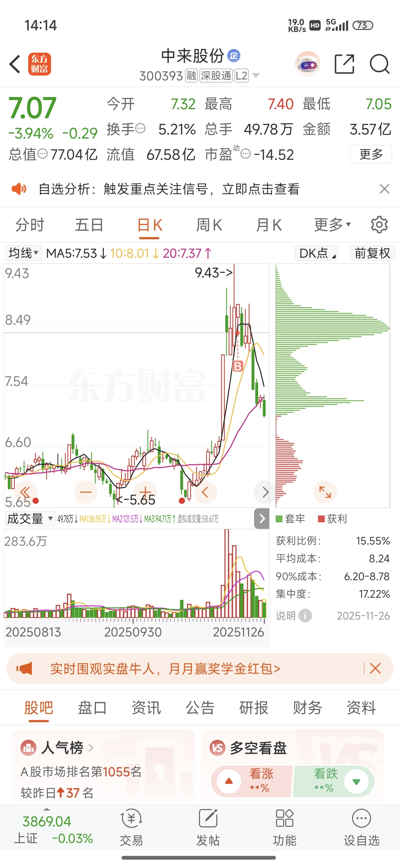 $中来股份(SZ300393)$ 亏晕了,套牢了,短线转中长线,别退市啊