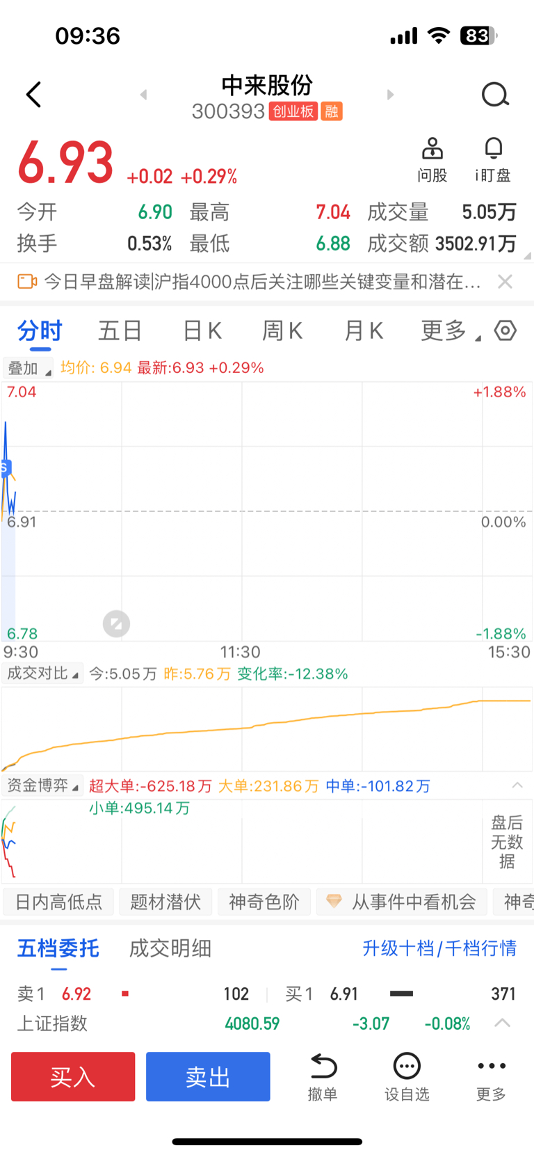 $中来股份(SZ300393)$ 先出来了,量能太少