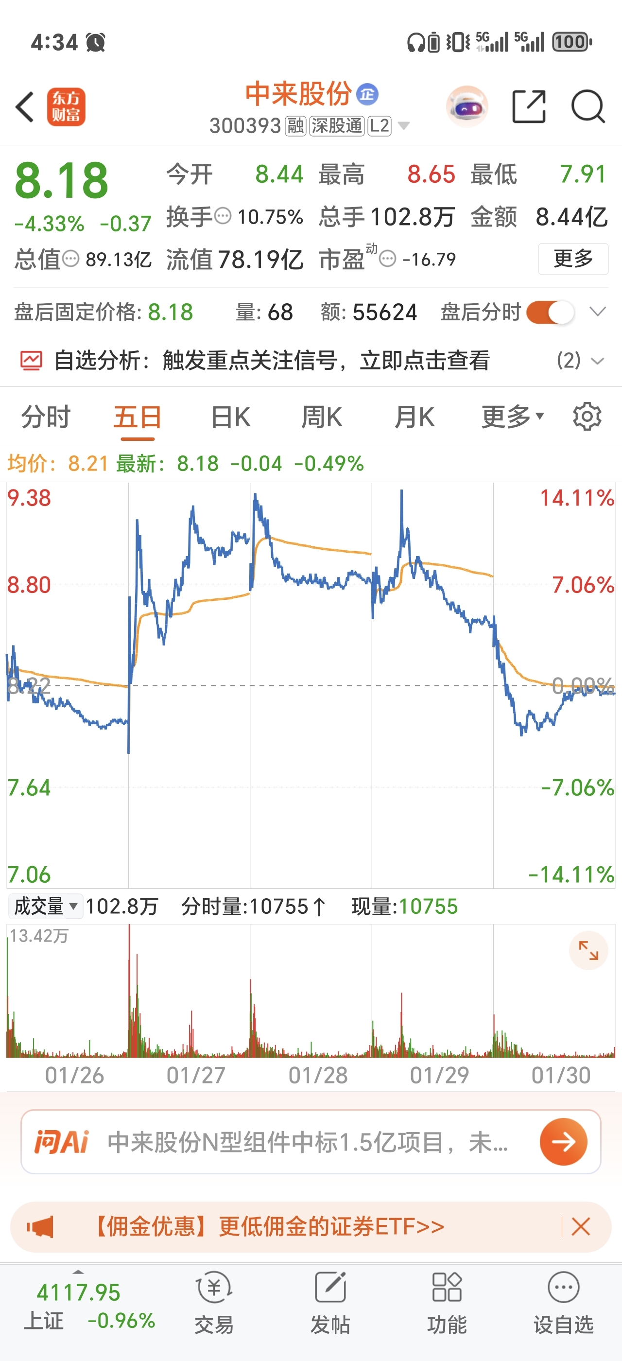 $中来股份(SZ300393)$ 玩了一周,玩成了负增长