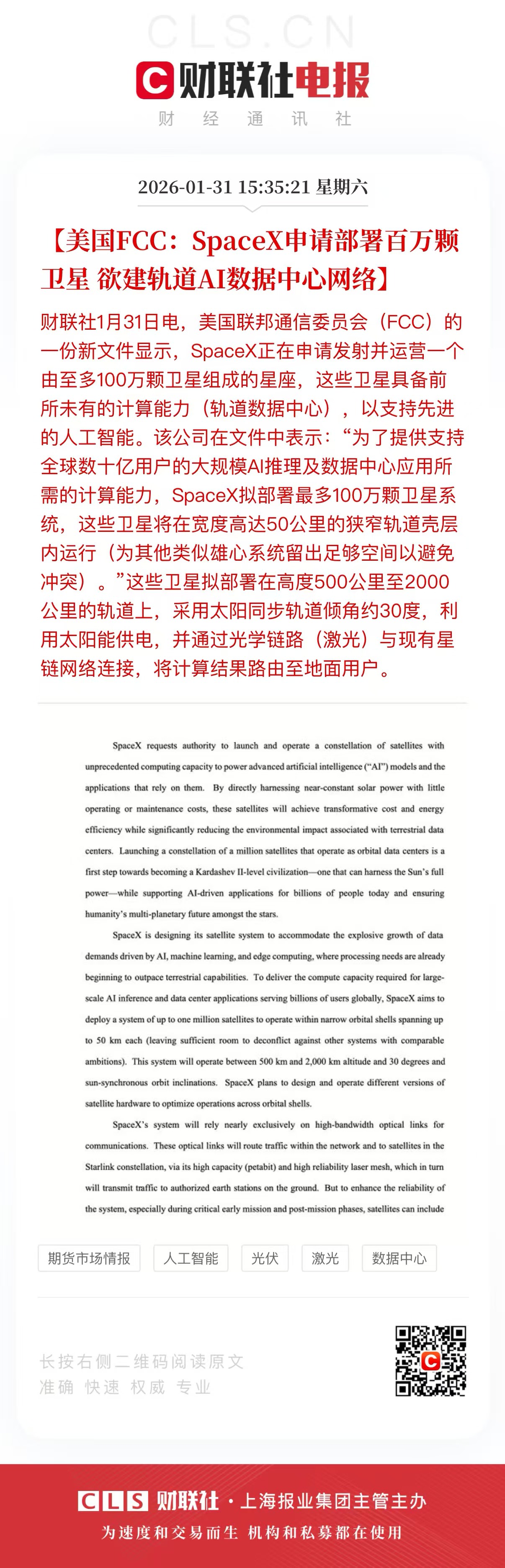 会不会利好太空光伏啊。里面说太阳能