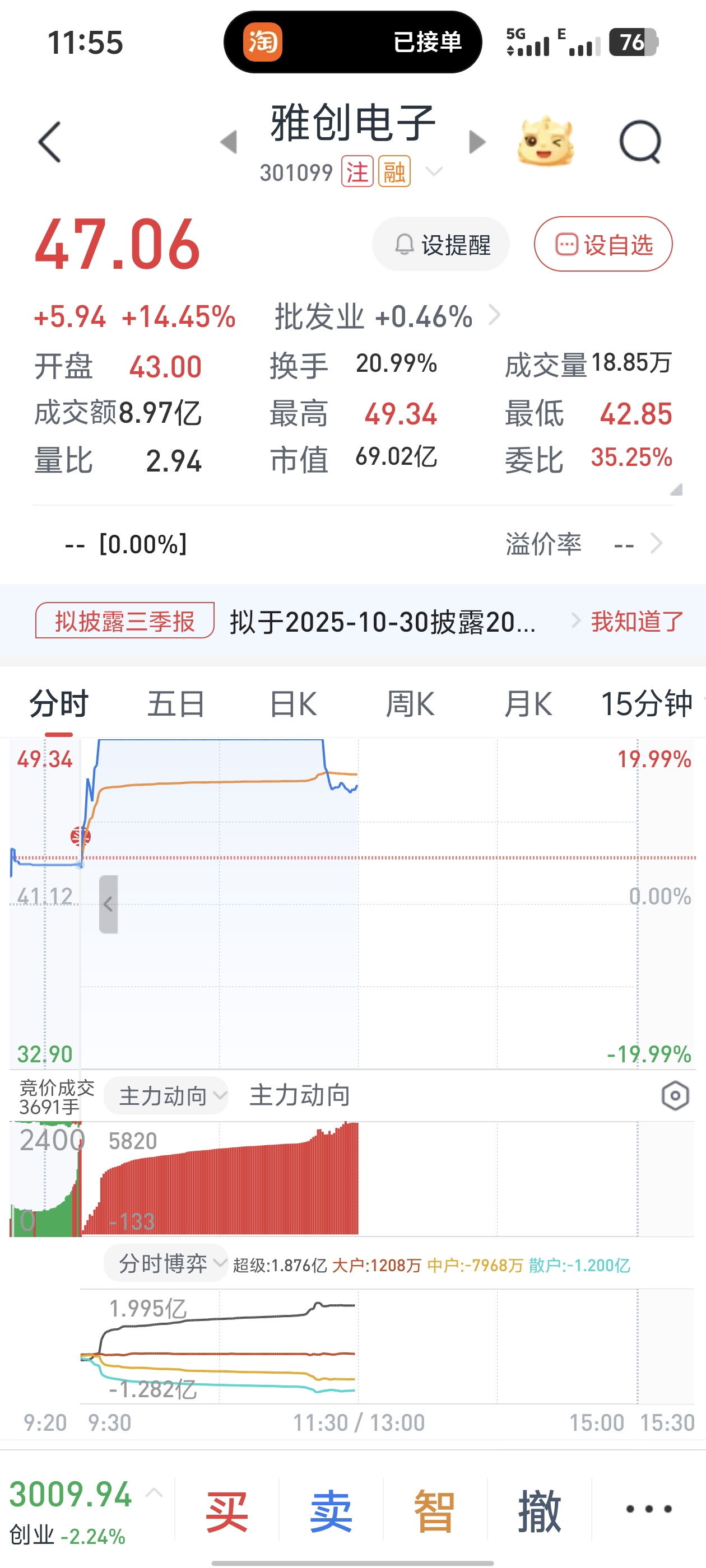 我准备下午开盘抄底了,早盘买的雅创电子居然开板了,请教大神们能抄吗?