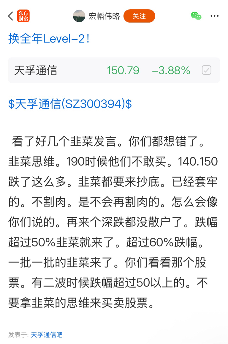 温馨提示: 1.根据《证券法》规定,禁止编造、传播虚假信息或者误导性信息,扰乱证券市场;2.用户在本社区发表的所有资料、言论等仅代表个人观点,与本网站立场无关,不对您构成任何投资建议。用户应基于自己的独立判断,自行决定证券投资并承担相应风险。《东方财富社区管理规定》