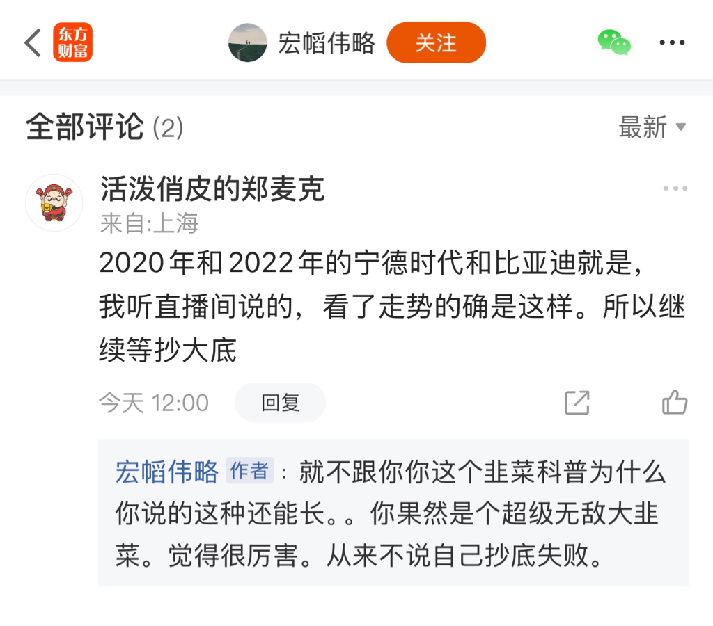 宏幍伟略,这个人真的好奇怪,我想抄底,死活不让我抄,还说现在进的都是大韭菜,没说