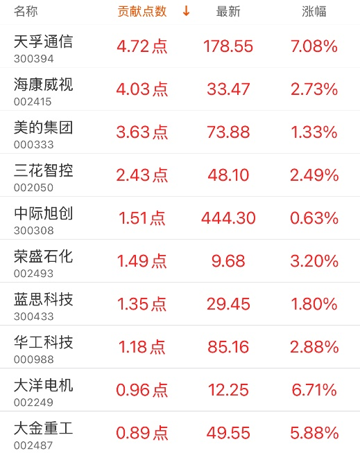 指数贡献榜:天孚通信贡献4.72点