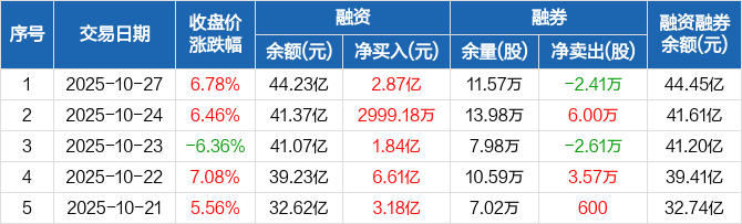 天孚通信:融资余额44.23亿元,创历史新高(10-27)