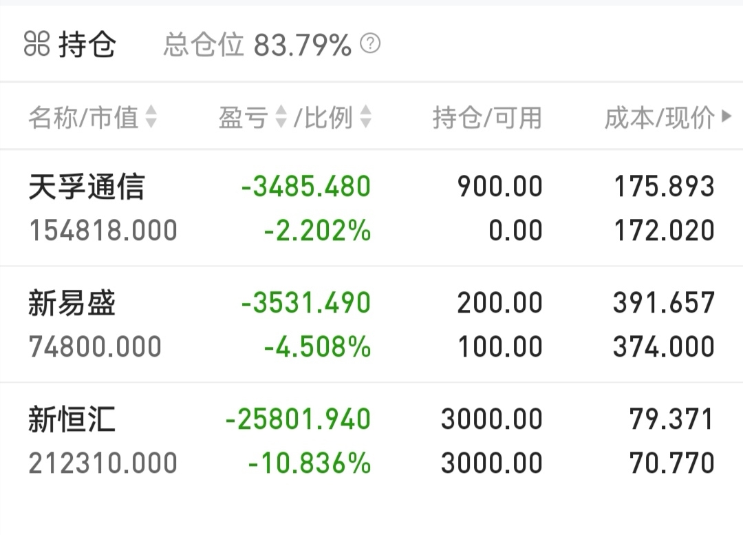 今天买了9手天孚通信,补了一手新易盛