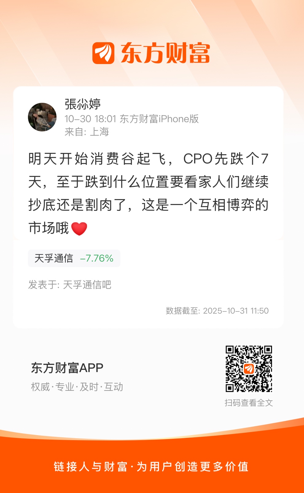 明天开始消费谷起飞,CPO先跌个7天,至于跌到什么位置要看家人们继续抄底还是割肉了,这是一个互相博弈的市场哦
