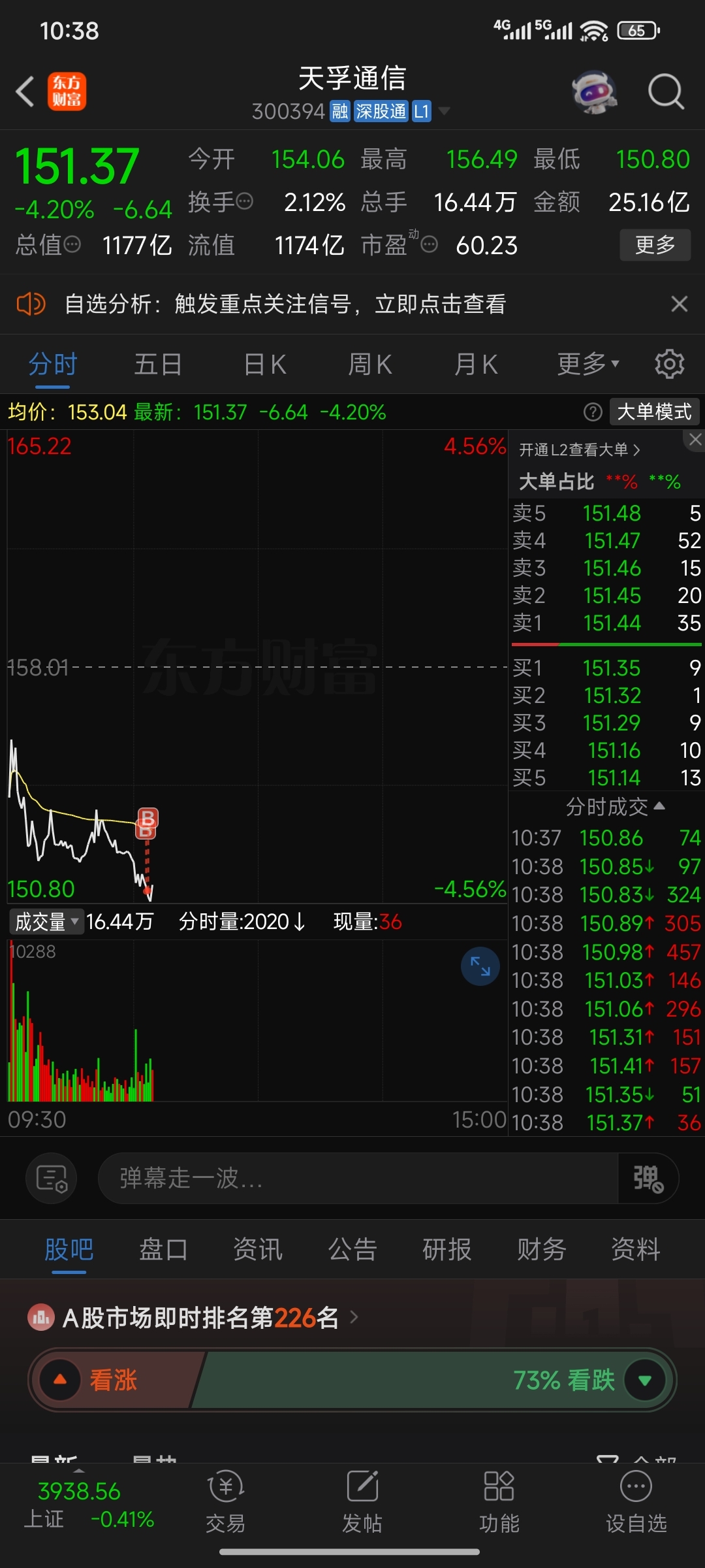 $天孚通信(SZ300394)$ 等不到149,先151加了