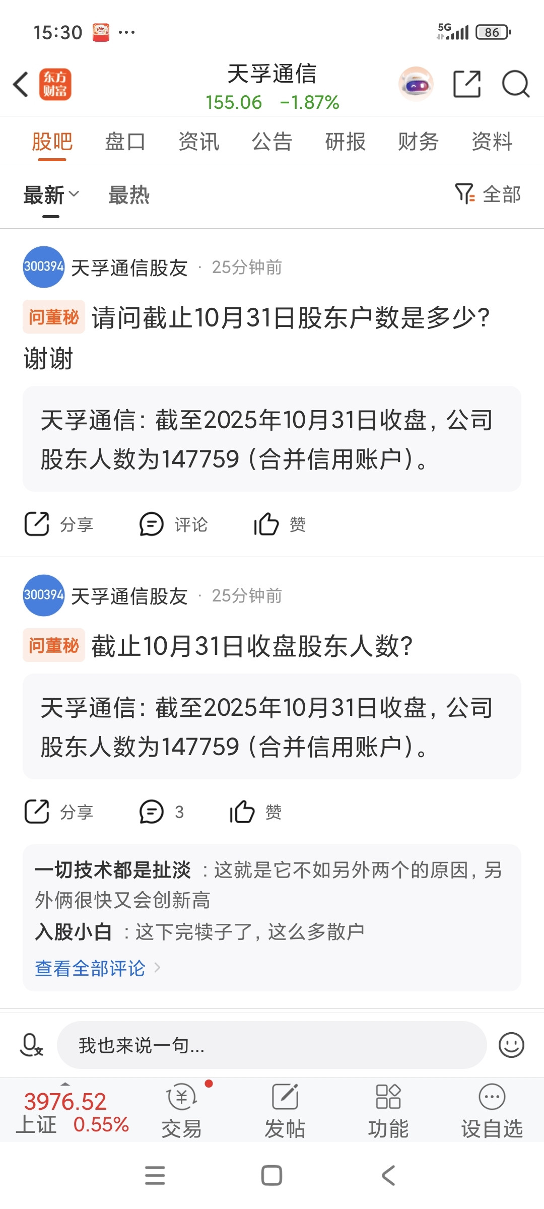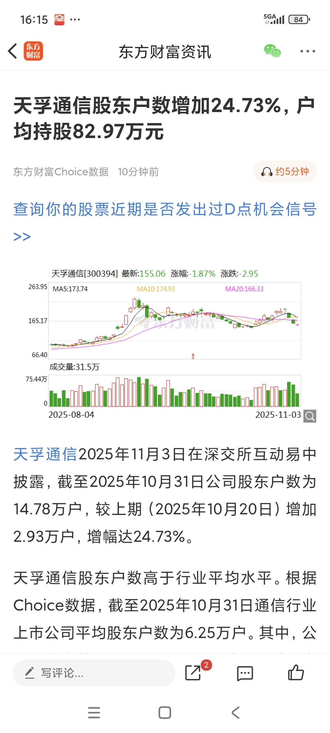 $天孚通信(SZ300394)$ 大哥们。家人们。真厉害。股东14.7万了。又增了3万多股东。主力把货都卖给你们。赶快抄底啊。哈哈哈。