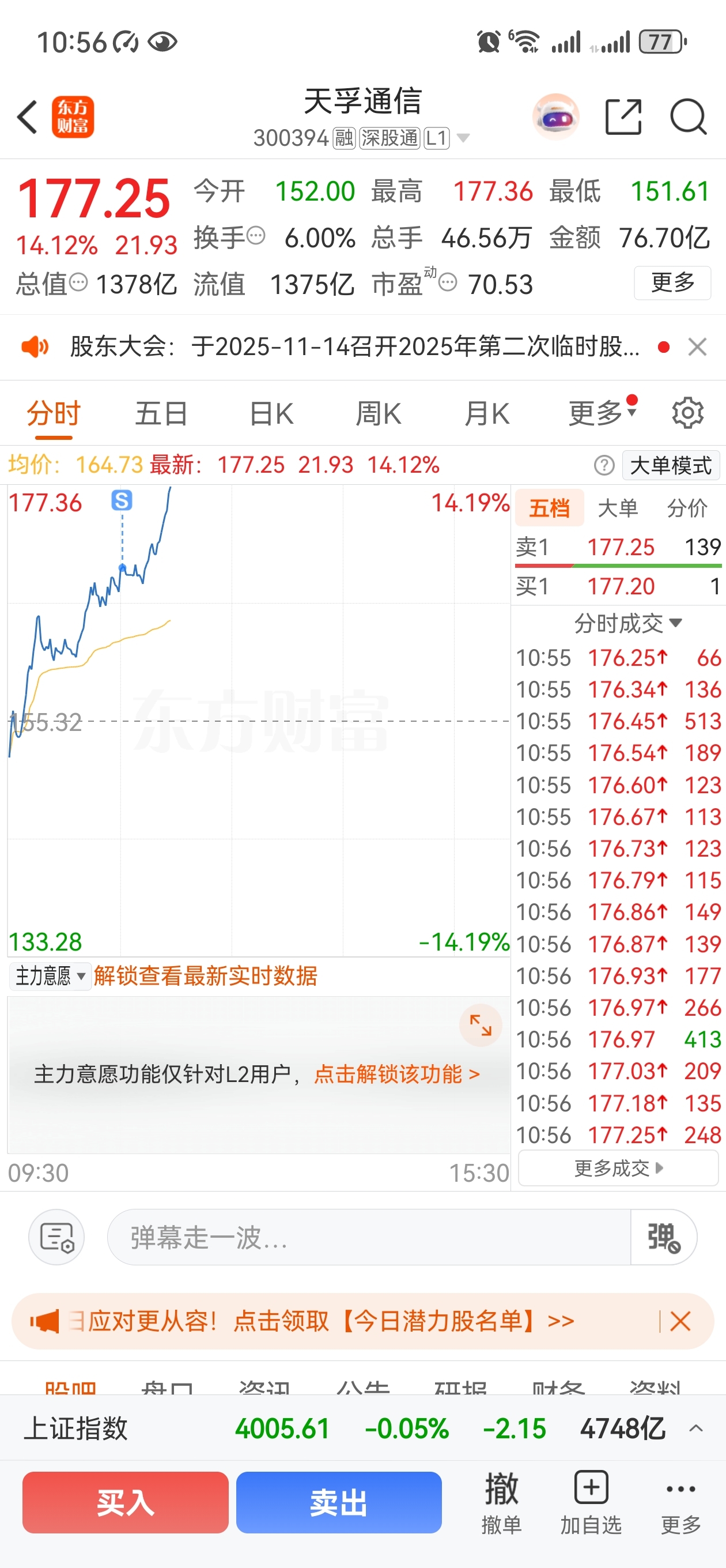 $天孚通信(SZ300394)$ 9个点卖飞一半,快来同路人,让我开心一下