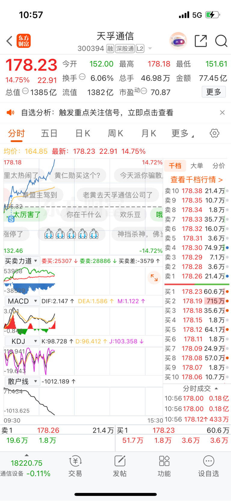$天孚通信(SZ300394)$ 啥消息这么猛,我还以为涨一点就回撤,做个t,现在后悔啊。