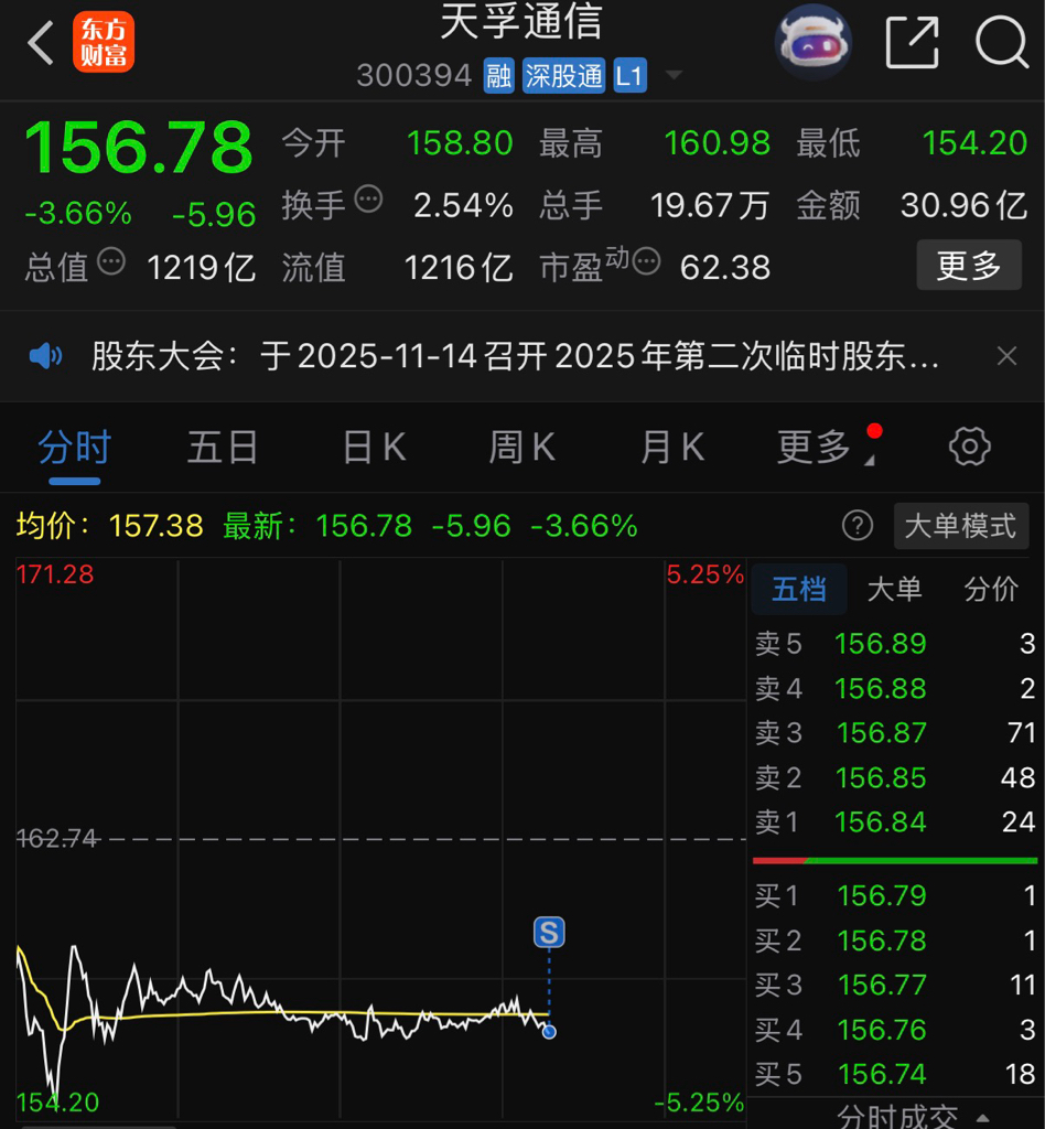 $天孚通信(SZ300394)$ 卖了参与一下砸盘